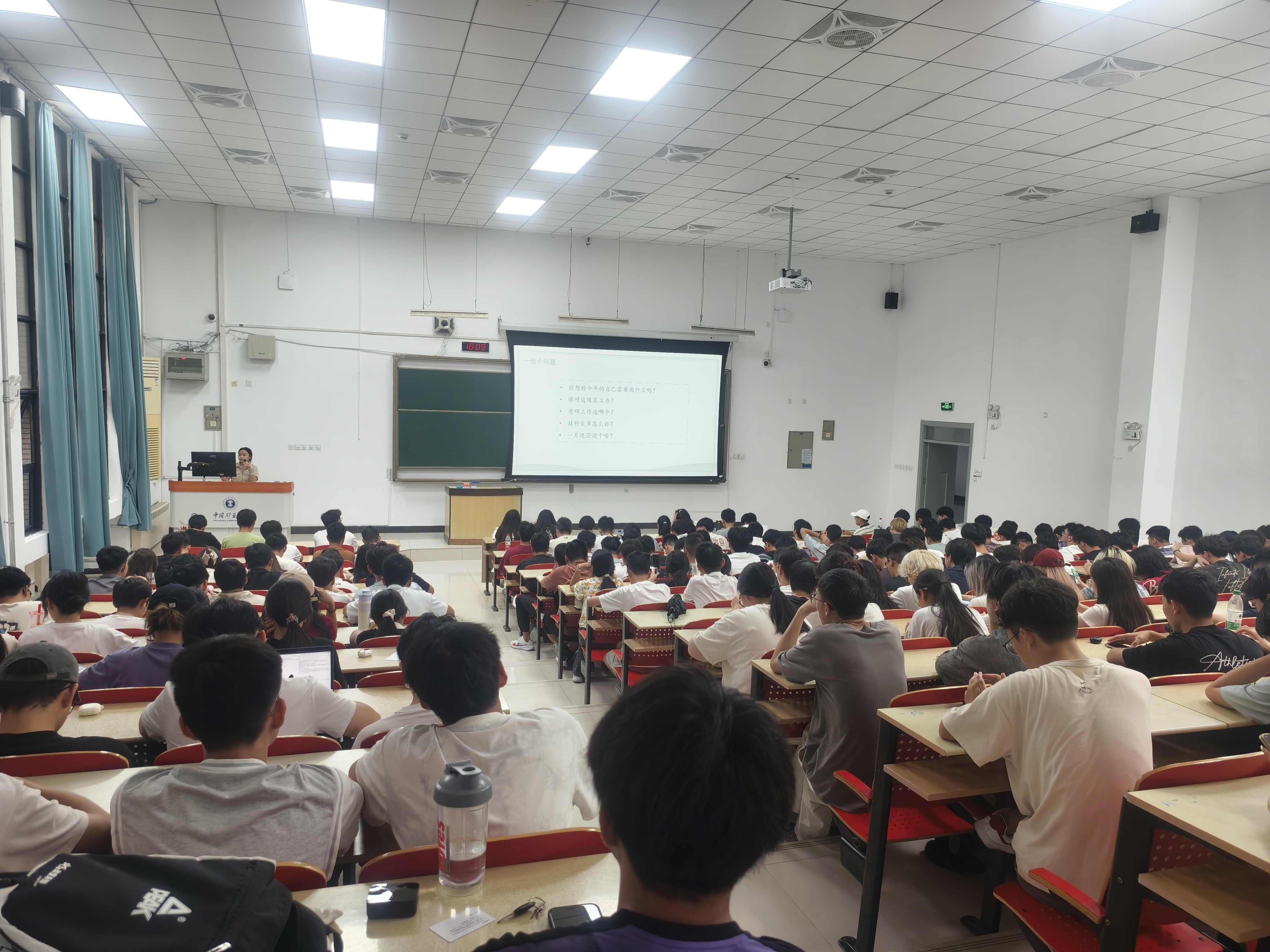 杨思晨老师着重强调了学生公寓日常管理规定与用电安全注意事项,并提醒同学们适度娱乐,规范内务。她重申了晚点名制度的重要性,并在学风建设方面鼓励同学们专注学业、夯实基础。随后,杨老师就保研政策做了系统解读,针对同学们的疑问进行了细致回应。面对有就业、考研、考公意向的同学,她分析了不同选择相关的准备要求,为大家提供了清晰的方向指引。最后,她结合四类典型诈骗案例开展防范教育,并贴心叮嘱大家关注身心健康,实现平衡发展。