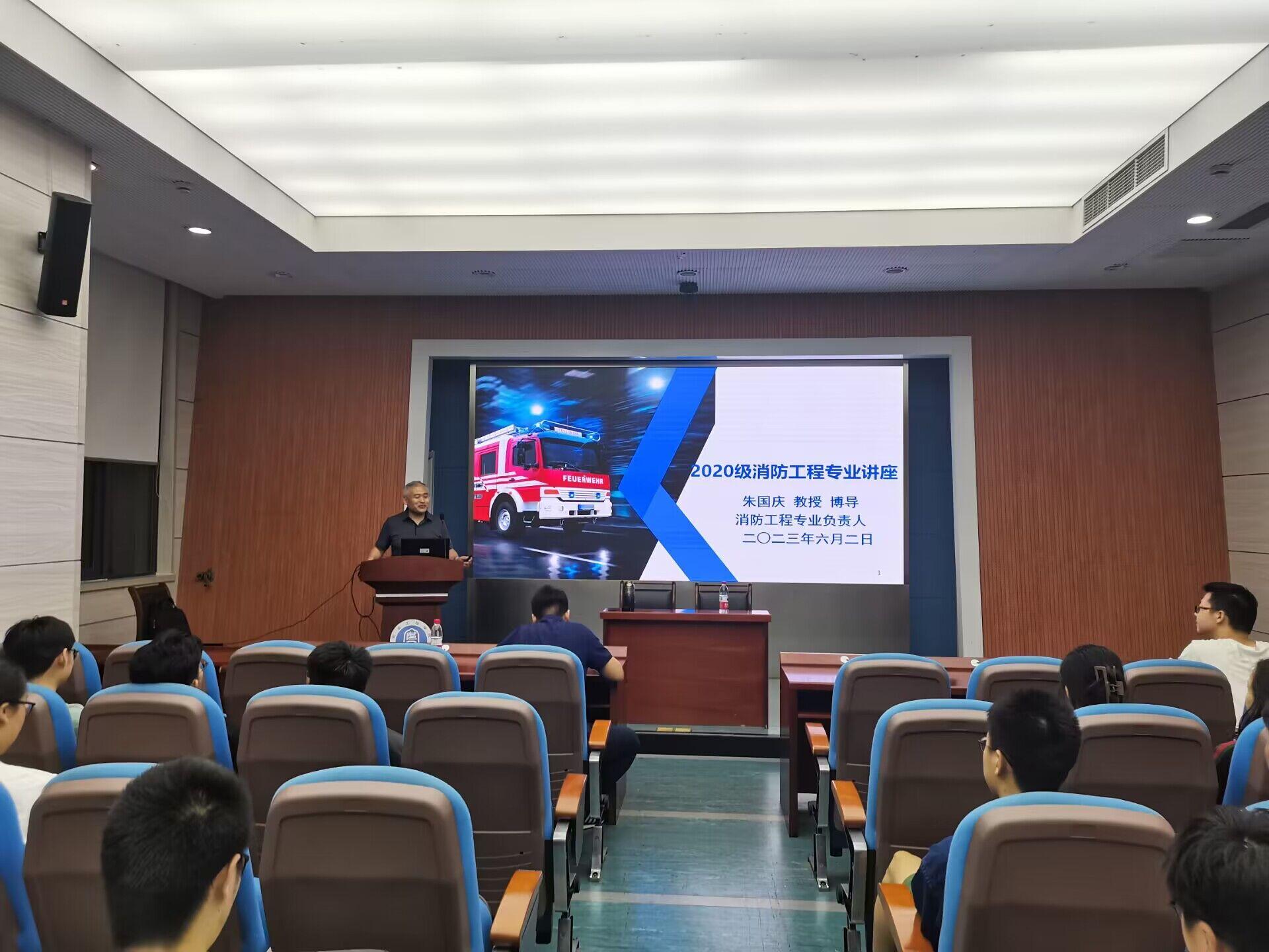 朱国庆教授受邀担任主讲,消防20-1班行政班主任刘厅及全体同学参加本次活动。
