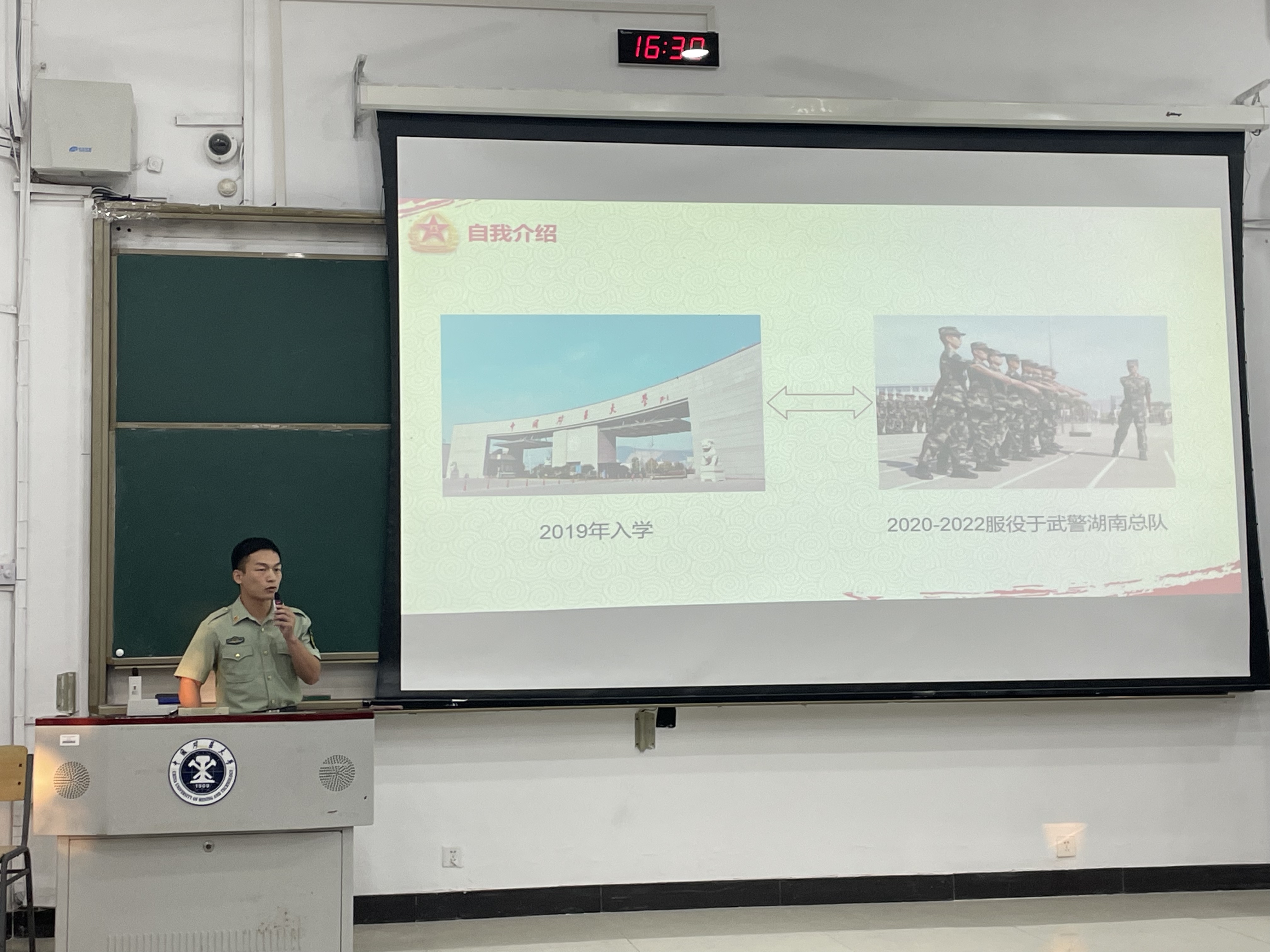 2021级于博2楼C102举办“用热血青春书写最美答卷”退伍大学生优秀事迹报告会。PO18