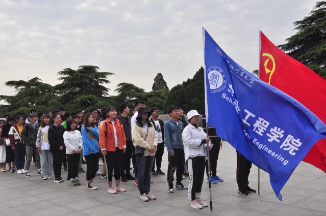 本次团日活动共分为四个部分:院学生代表讲话、入团宣誓、为新团员佩戴团徽及齐唱团歌。在经过个1多小时的步行后同学们于9点陆续抵达淮海纪念塔,毛佳伟和刘凌妤作为学生代表在淮塔纪念碑下进行演讲。随后进行18级1班新团员莫绪昌的入团宣誓活动,宣誓结束后由钱雄书记为他佩戴团徽。活动的尾声大家齐唱团歌,纪念五四运动100周年。活动结束后同学们分散参观淮海纪念馆,品读淮海战役历史,体会革命先烈不畏艰险、浴血奋战的无畏精神,感受革命先烈百折不挠、舍身为国的民族气节。