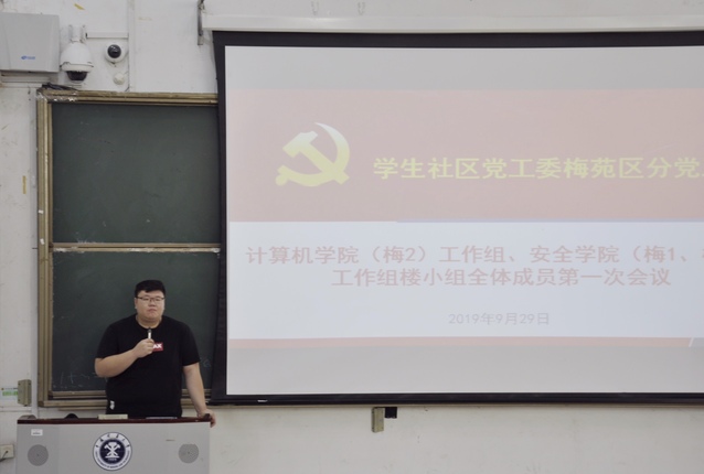 9月29日上午十点,安全学院(梅3)工作组于公教博二C102召开第一次全体工作会议,党委学工部副部长、梅苑区分党工委书记纪承,党委学工部学生创业教育与发展指导办公室主任罗育超,安全学院学工办主任、梅3工作组副组长于基伯,团委书记、副组长刘世通,安全学院全体专兼职辅导员,团总支书记、梅苑分党工委工作组联络人刘铭瑞以及梅3楼小组全体成员100余人参会。计算机学院党委副书记、梅2工作组组长秦峰主持了此次会议。