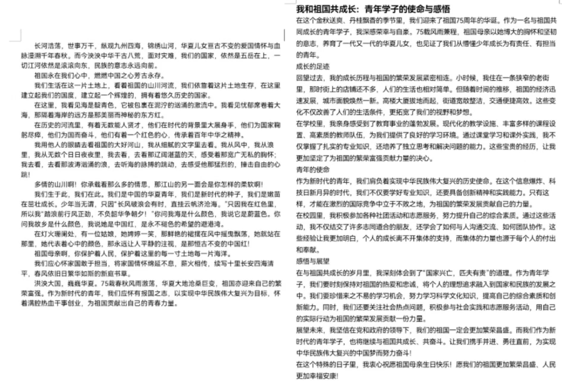 团委学生会文艺部广泛宣传该活动,动员有意愿的同学加入活动QQ群,吸引了很多学生来参加此次活动。在活动的中期,同学们以高涨的热情积极投稿,作品文采斐然、才华横溢,他们笔下书写着对祖国这75年风雨兼程的理解,激扬着奋发图强、砥砺前行的坚定信念,表达了对祖国的无限热爱与美好祝愿。作品收集完毕之后,主办方邀请评委老师对作品进行打分,并按照比例确定得奖人选。最后,公示获奖人选,制作并分发奖状。