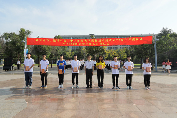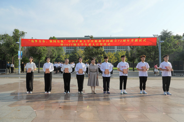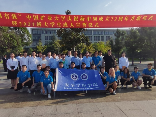 承办的“逐梦青春,强国有我”庆祝新中国成立72周年升旗仪式暨2021级大学生成人宣誓仪式在国旗广场举行。校领导刘波、宋学锋、曹德欣、赵建岭、李强、蔡世华,校党委常委、校长助理张万红,校党委常委、组织部部长张万海出席仪式。校团委书记谢发国主持仪式。院长王恩元,副院长郭梅香、王亮,院党委副书记孙留涛,学工办主任、团委书记刘世通,21级辅导员卢笛,新发展党员代表,2021级青年团员代表共同参加了升旗仪式。