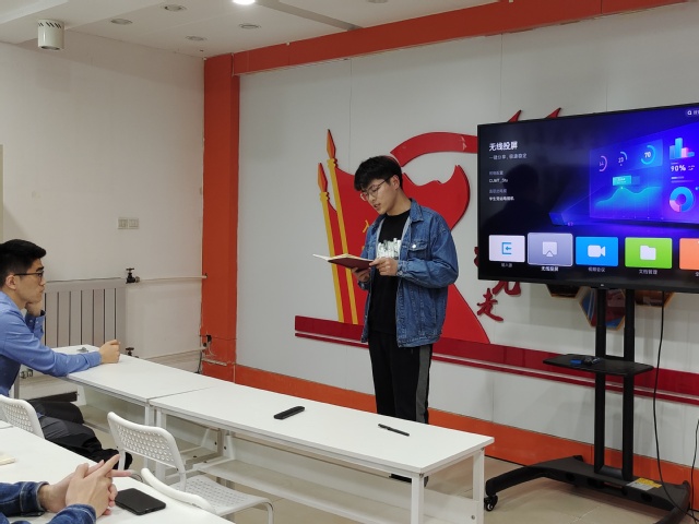 活动伊始,主持人介绍了本次活动的主题—“开天辟地-五四青年运动”。接着张国富同学结合自身经历,讲述了五四运动的背景及意义,带领同学们回顾了“五四青年运动的起因、经过和结果,让我们体会到了革命先辈们的热忱与坚强。活动最后,同学们在听完党史介绍后有感而发,并分享了感悟。
