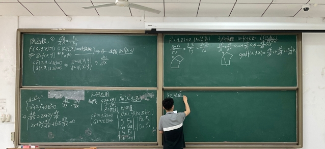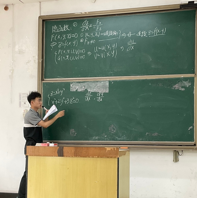 首先,费桢从“偏导数”等知识点入手,由浅入深地为同学们讲解了基本题型、基本解题方法、重要知识点以及易错点。在重积分这一章节,他强调,首先要考虑积分区域的对称性与坐标轮换性,以利于解体与简化运算。为了更具体地讲解,他还以本次模考试卷的选择题为例,深入细致地逐步分析演示。随后,毛紫浩同学以自己课前精心制作的ppt为模板,重点讲解了第七、八、九章的重点题型,以及容易考到但却容易被忽视的方面。他的讲解深入浅出、循循善诱,帮助同学们进一步理解与掌握了重点知识点。