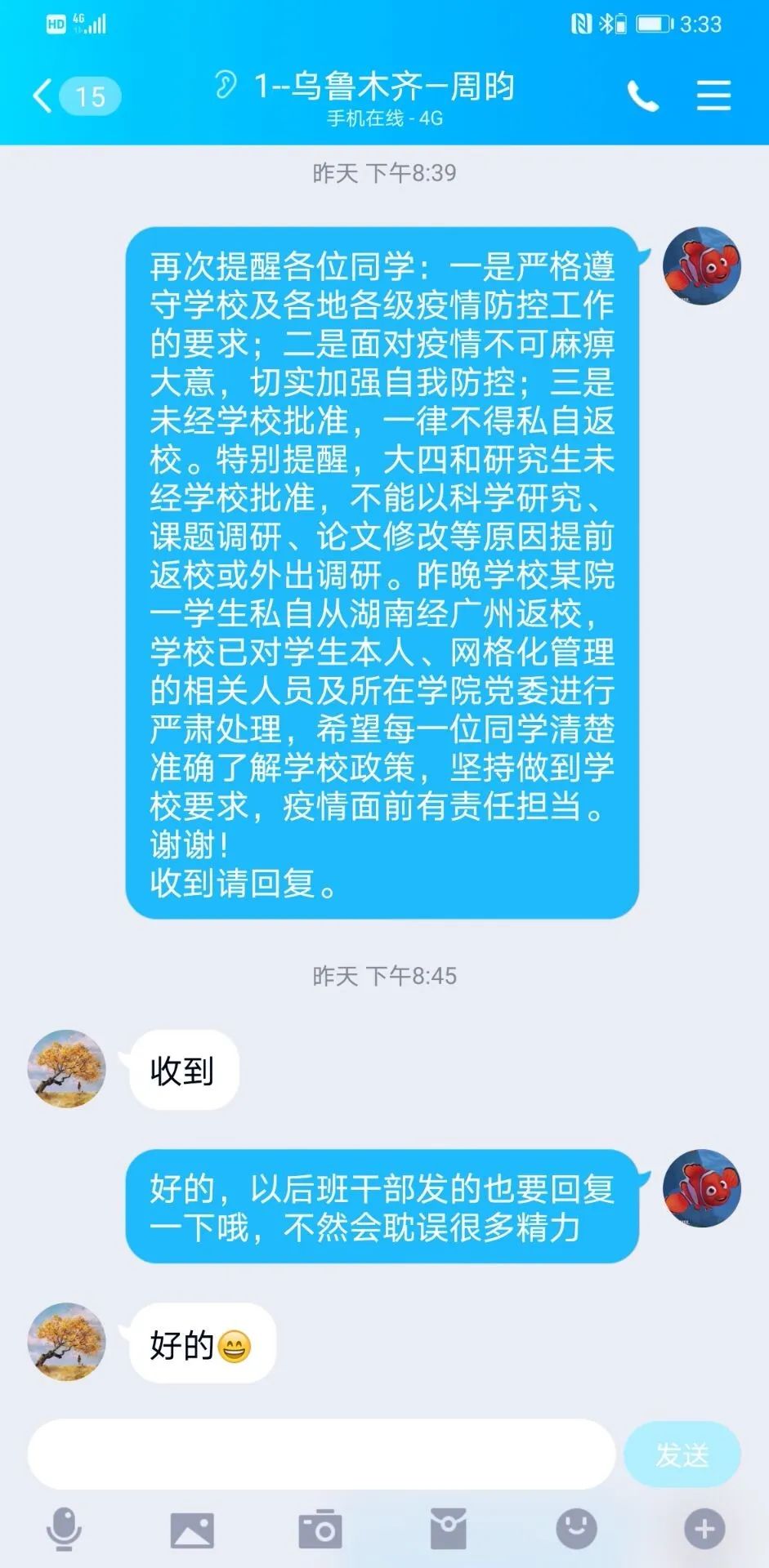 会后辅导员通过打电话等方式进一步强调网格化的重要性和注意事项,做好动员,利用网格化管理掌握学生的动态,把学校的关心和要求一对一地传达给每一个学生。
