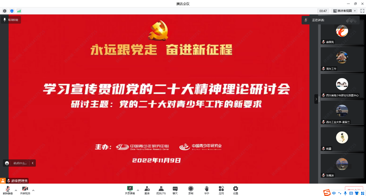 为加深对党的二十大精神的理解,11月9日下午,中国青少年研究中心和中国青少年研究会联合举办了“学习宣传贯彻党的二十大精神理论研讨会”活动,PO18