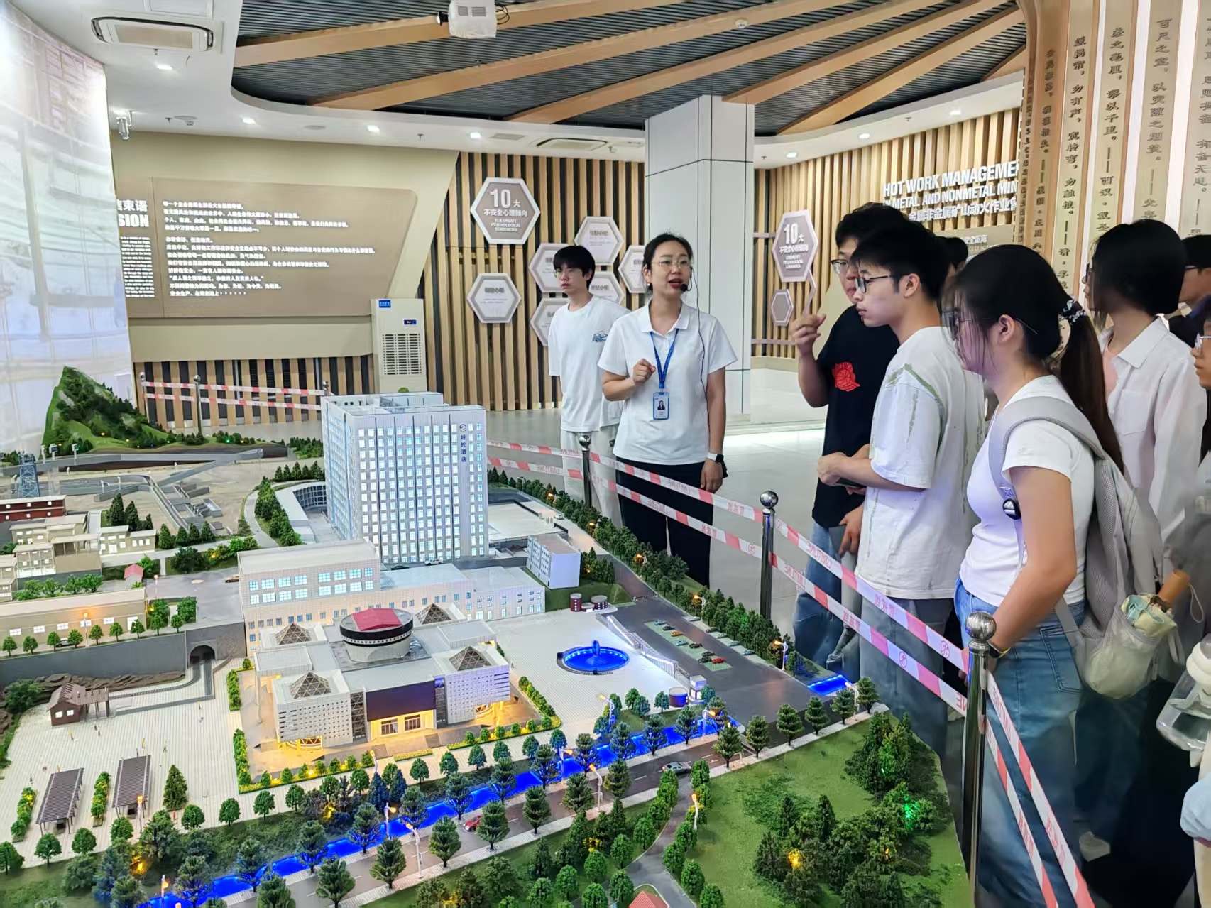行前,实践团成员周密筹备,系统学习了绿色发展与低碳转型相关理论,并深入研读了矿区发展史料。在培训学校工作人员的全程引导下,团队首先参观了安全体验馆,通过沉浸式体验和详实资料,全面了解了矿区的历史沿革与发展成就。随后,成员们深入实训矿井,实地考察井下开采作业环境,现场聆听专业技术人员对开采工艺、核心技术的详细讲解,并重点学习研讨了矿业开发过程中面临的环境挑战及其应对措施。实践过程中,团队成员围绕矿山可持续发展路径等议题,与相关专家展开了深入交流与热烈研讨,深化了理论认识与实践理解。