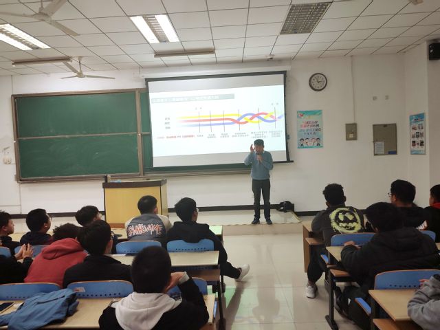 首先,全体学生填写《中国大学生心理健康测评表》,对最近一个月的心理状态进行了反馈。胡泊老师为大家开展了主题为“大学生常见心理问题与心理咨询”的心理健康教育。胡老师从自己的工作——心理咨询师引入话题,介绍了心理疾病及其主要症状。胡泊老师幽默风趣的话语让同学们在轻松的气氛中接受心理健康教育。最后,胡泊老师提供了PO18
