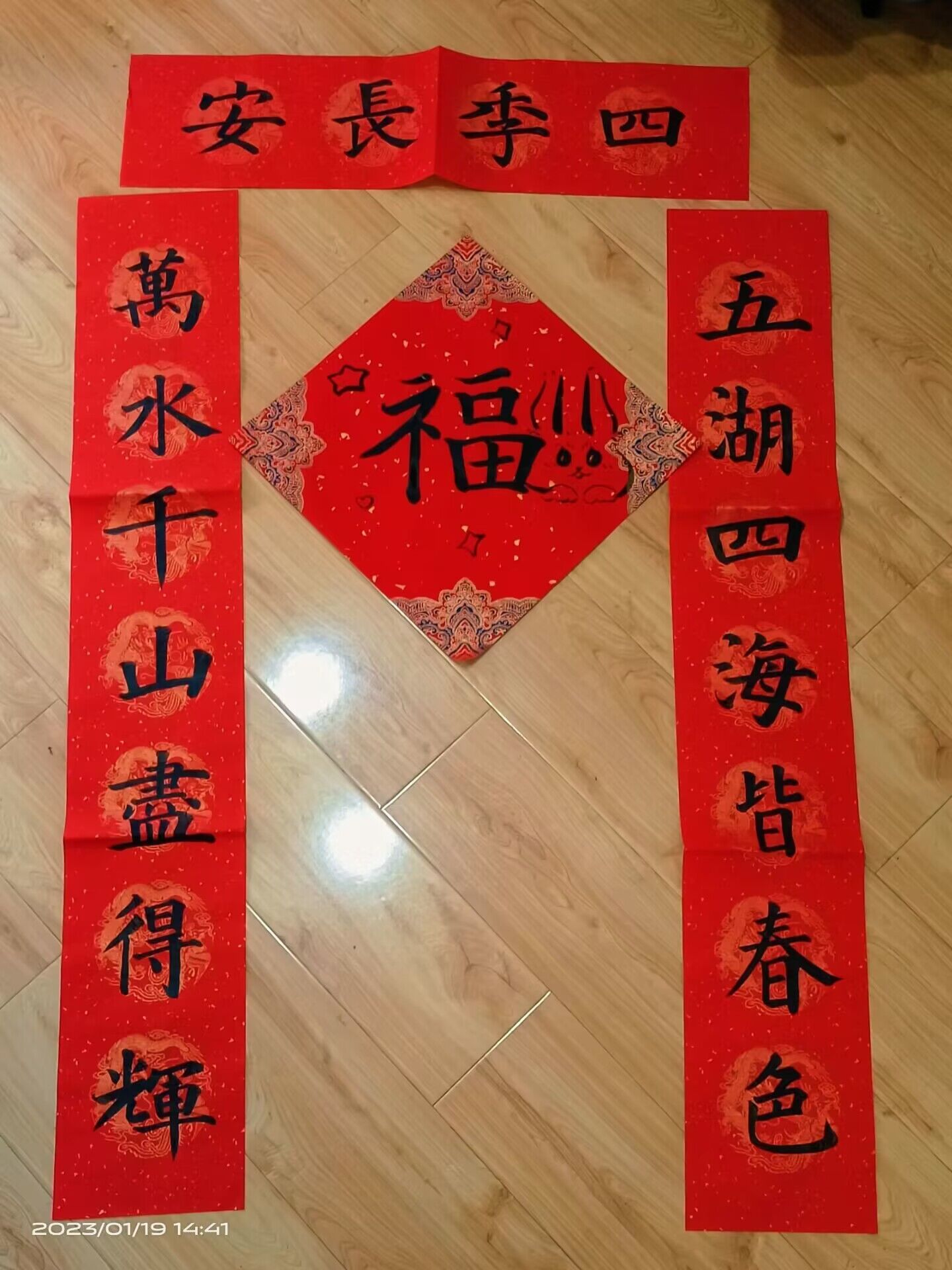 本次活动采取线上参与的方式,安全学院学生积极踊跃报名。参赛选手需在规定时间内自行选择创造软笔或硬笔书法作品,选择软笔需要提交两幅书法软笔作品:一为写“福”字,二为一副对联;选择硬笔需要提交一份硬笔贺词。为保证比赛的严谨性,要对创作作品过程进行录像,露出手与脸。参赛作品由评委对软笔与硬笔作品分别进行评分,依据参赛人数及提交作品数量评奖。同学们的笔触苍劲有力,笔墨运用畅快,创作出一幅幅极具节日氛围的春联和硬笔作品。