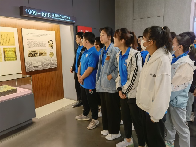 的前身以及其历史变迁,着重介绍了以矿权换学权以及焦作路矿学堂和私立焦作工学院的历史;接着大家跟随讲解员的脚步,了解了矿大的先辈以及矿大的辉煌历史,尤其是矿大的高光时刻——百年校庆,同学们被矿大的辉煌历史所震撼;最后,讲解员向大家介绍了PO18