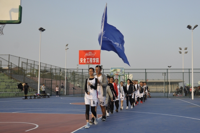 伴着激昂的音乐,各个学院代表队依次入场,安全学院代表队位于第八个,在运动员入场完毕后,体育学院副院长许彩明为开幕式致辞,许彩明副院长希望同学们积极参与,在篮球场上一展雄姿,纵横驰骋,以更高、更快、更强的拼搏精神,赛出风采,赛出风格,赛出友谊,为学院争光。随后,裁判员代表进行宣誓。最后,是由赞助商百威集团啦啦操队带来的激情四射的啦啦操表演。
