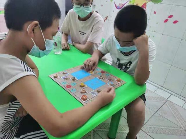 志愿者教孩子下棋