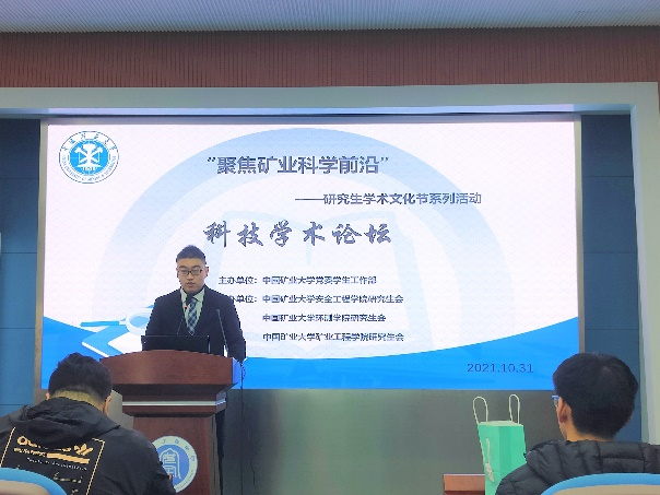 研究生会承办,环测学院研究生会、矿业工程学院研究生会协办的“聚焦矿业科学前沿”科技学术论坛第二期于10月31日上午九点在安全学院A200成功举办。参加本次论坛的师生有安全学院学工办主任刘世通老师以及安全学院、环测学院、矿业学院的部分硕博研究生、本科生,汇报嘉宾人员分别是:罗中正、朱宁、郭敬杰、李建、杨康、杨哲华。本次论坛由陶奕帆主持。