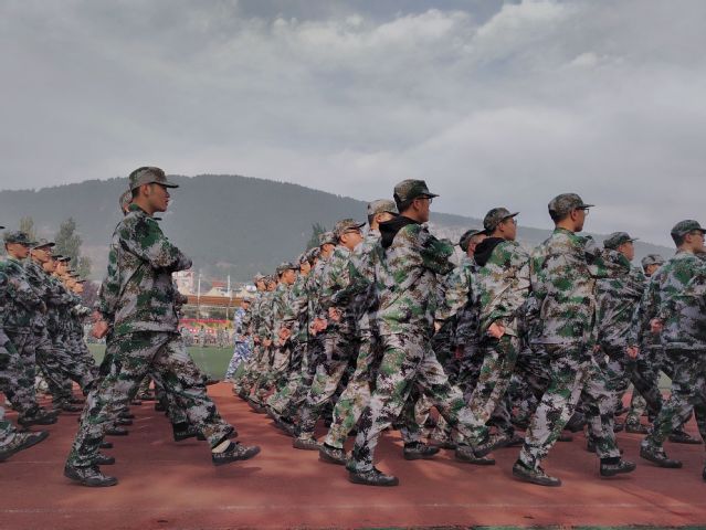10月17日,新生军训第11天。在军训的中后期,为了使得军事技能训练更加合理高效,提高大家各方面的能力,并在最终的总结大会上有出色的表现。同学们被分为方阵队列、匕首操方阵、红旗队、特色方阵等几个部分进行集中训练。