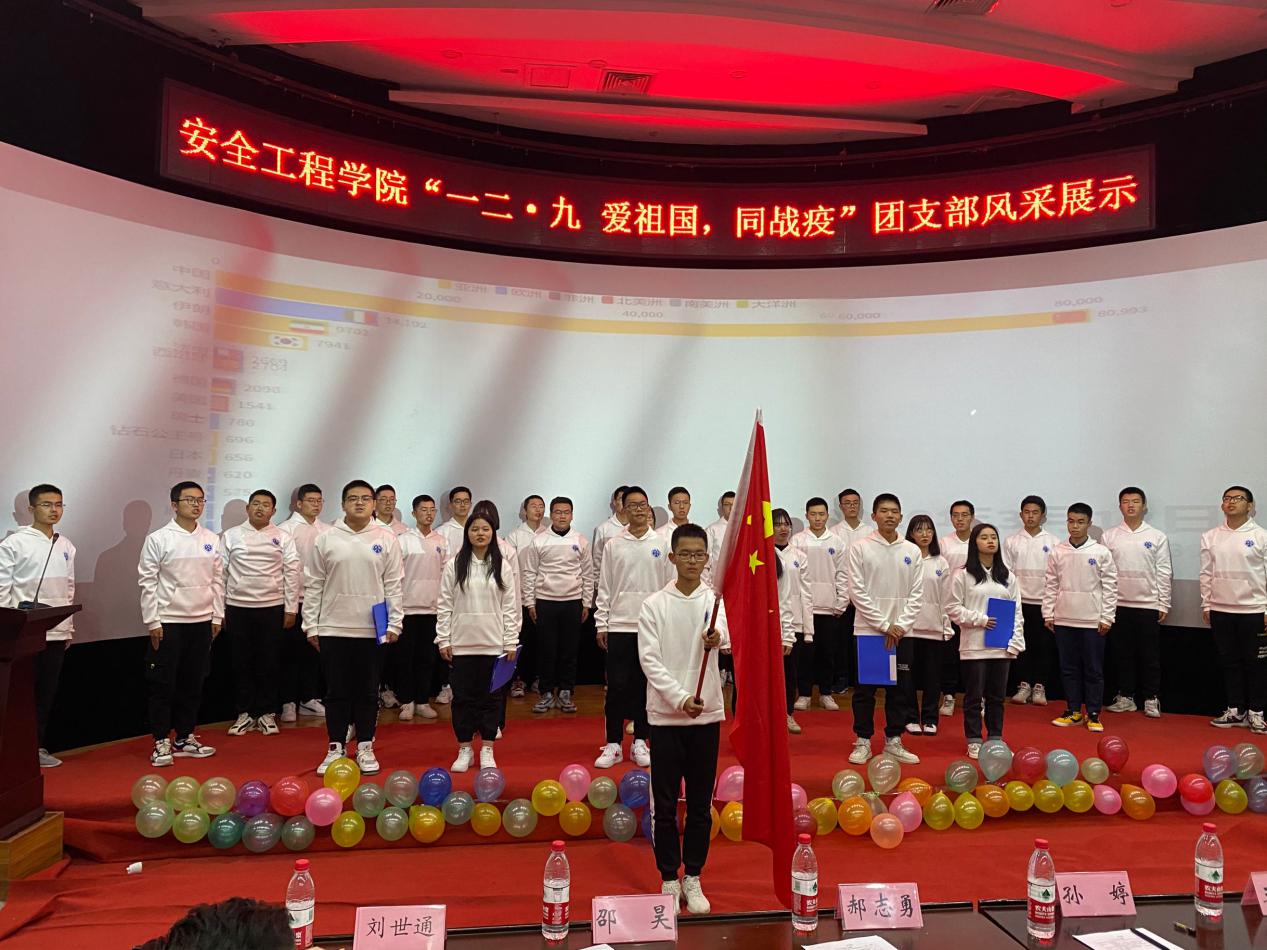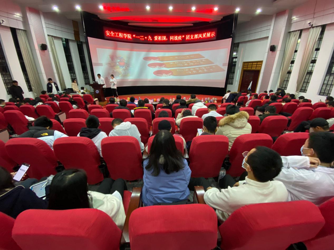 团委学生会在环测学院报告厅举行“一二·九爱祖国,同战疫”团支部风采展示活动。安全20-2班班主任郝志勇、安全20-3班班主任邵昊、安全20-5班班主任王青祥、安全20-6班班主任李世航、安全19-4班班主任孙婷,学工办主任刘世通、辅导员陈劲松、杨涛、孙一伟出席了本次活动。
