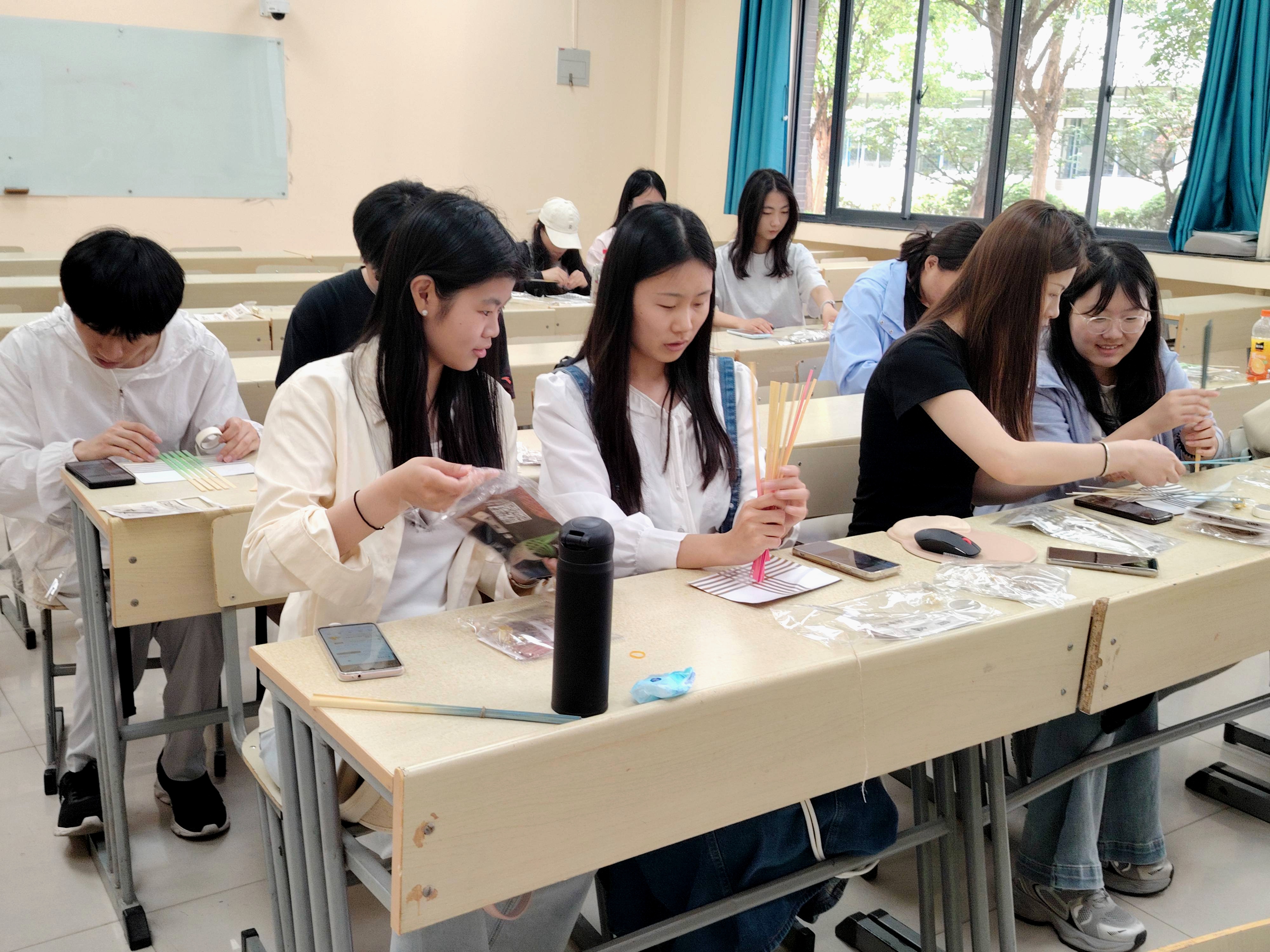 本次活动以“非遗竹编”为核心内容,以“美育浸润计划”为框架,将竹编制作体验与创意摄影相结合,通过沉浸式互动激发学生的创造力与协作力,引导同学们感受匠人精神,在动手实践中感悟非遗文化的魅力。活动吸引了全体同学的广泛关注和积极参与。在主持人为大家介绍完竹编文化的历史和匠人精神后,同学们现场领取材料体验竹编制作,随后通过镜头捕捉竹编作品的魅力,创作出兼具艺术性与文化内涵的摄影作品。