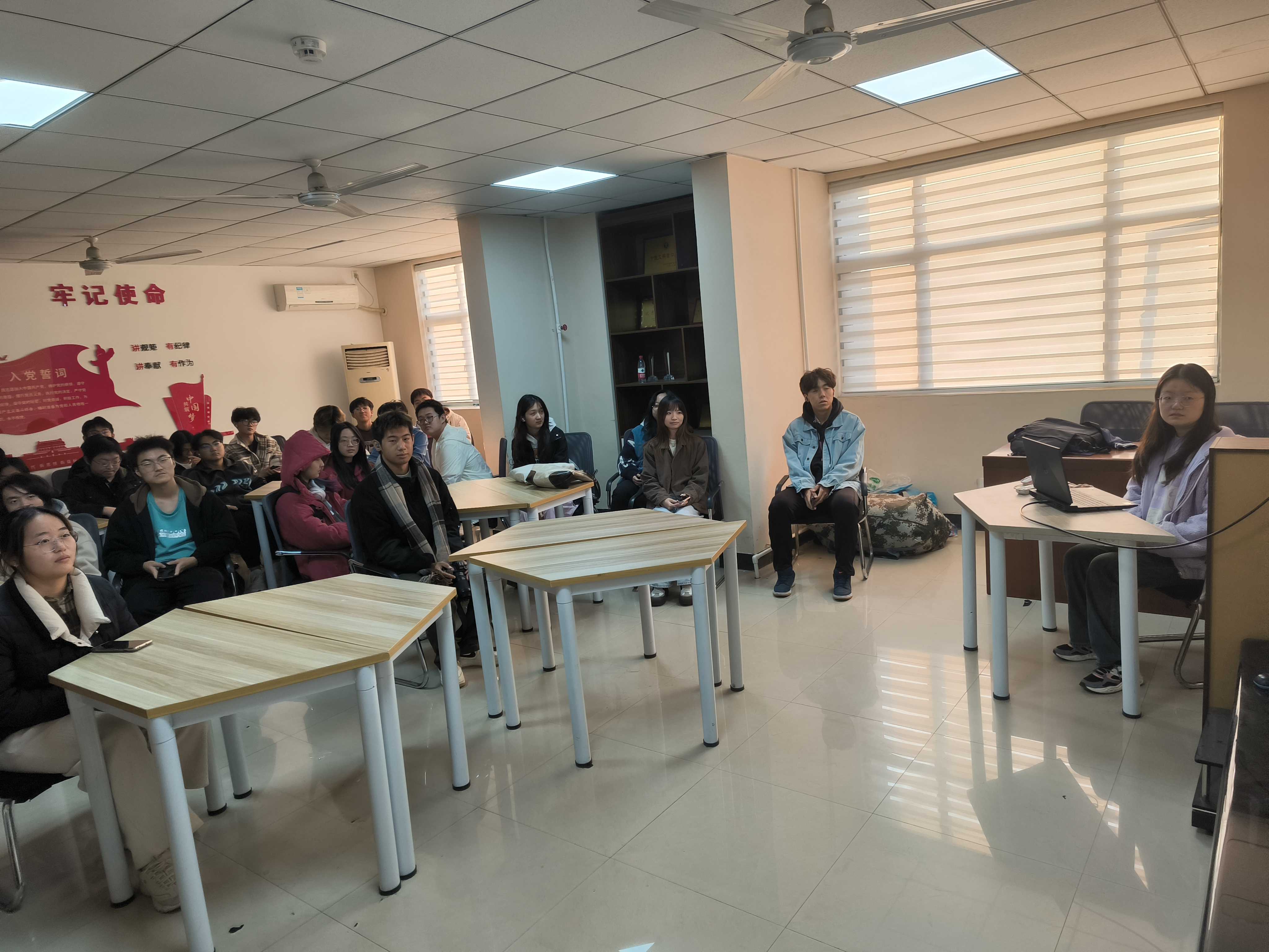 学生党员工作站于梅三五楼力行轩开展“追求卓越,争创一流”主题讲座,张艺怀同学受邀主讲,安全2023-4班同学积极参与。