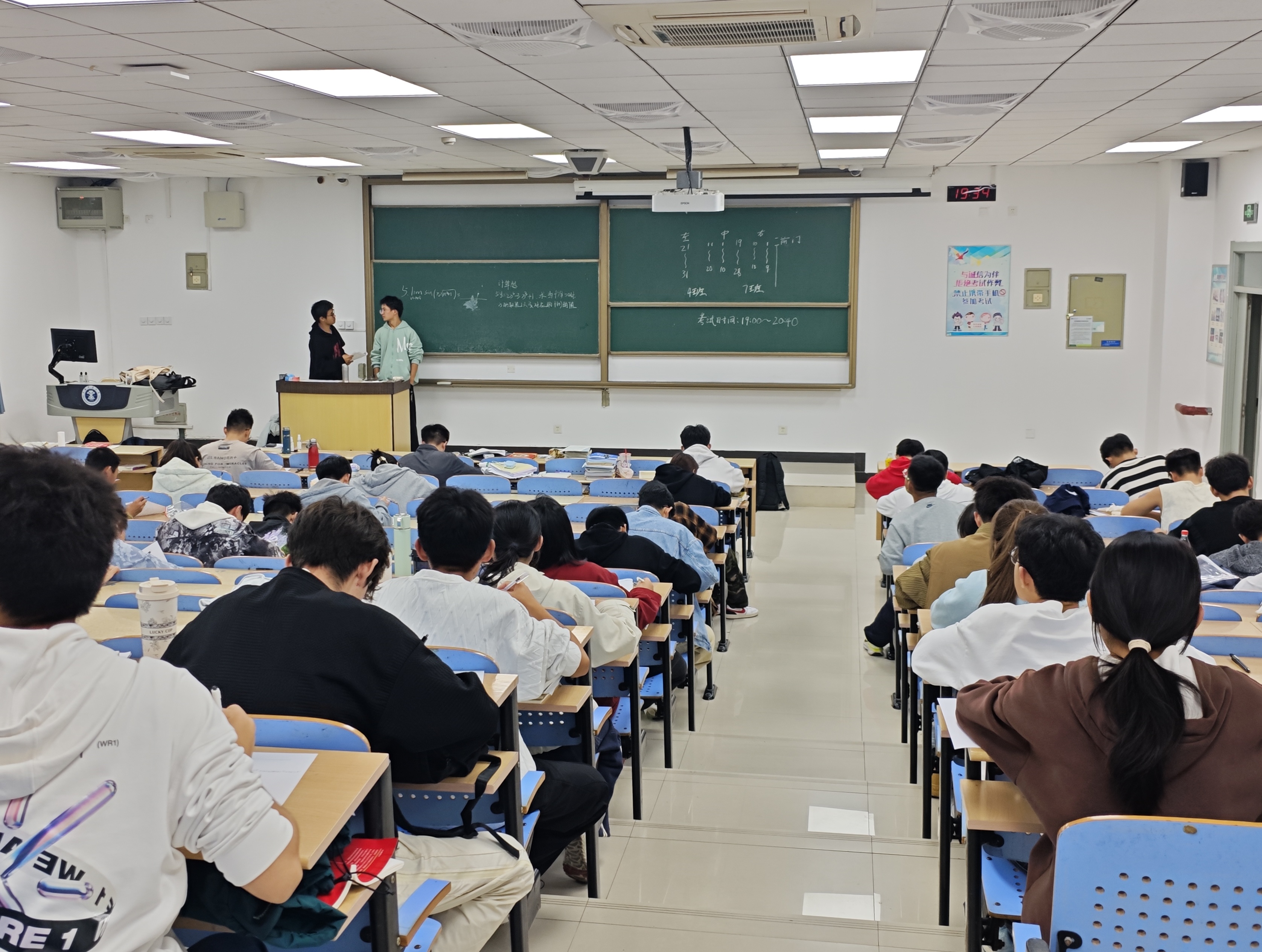 此次模考中,学院团委学生会学习部提前准备好模考试卷,模拟考试现场严格遵循高数A1正式考试的流程和要求,全体同学积极配合监考人员工作,有序进入考场教室签到并上交与考试无关的物品,监考人员宣读考试纪律并分发试卷。七点整,考试正式开始,同学们迅速进入考试状态,在考试期间,考场上秩序井然,纪律严明,同学们认真地伏案作答。监考人员不断巡考,确保模考公平公正。八点四十分,模考正式结束,同学们停止作答,待监考人员回收试卷后,同学们有序离场。