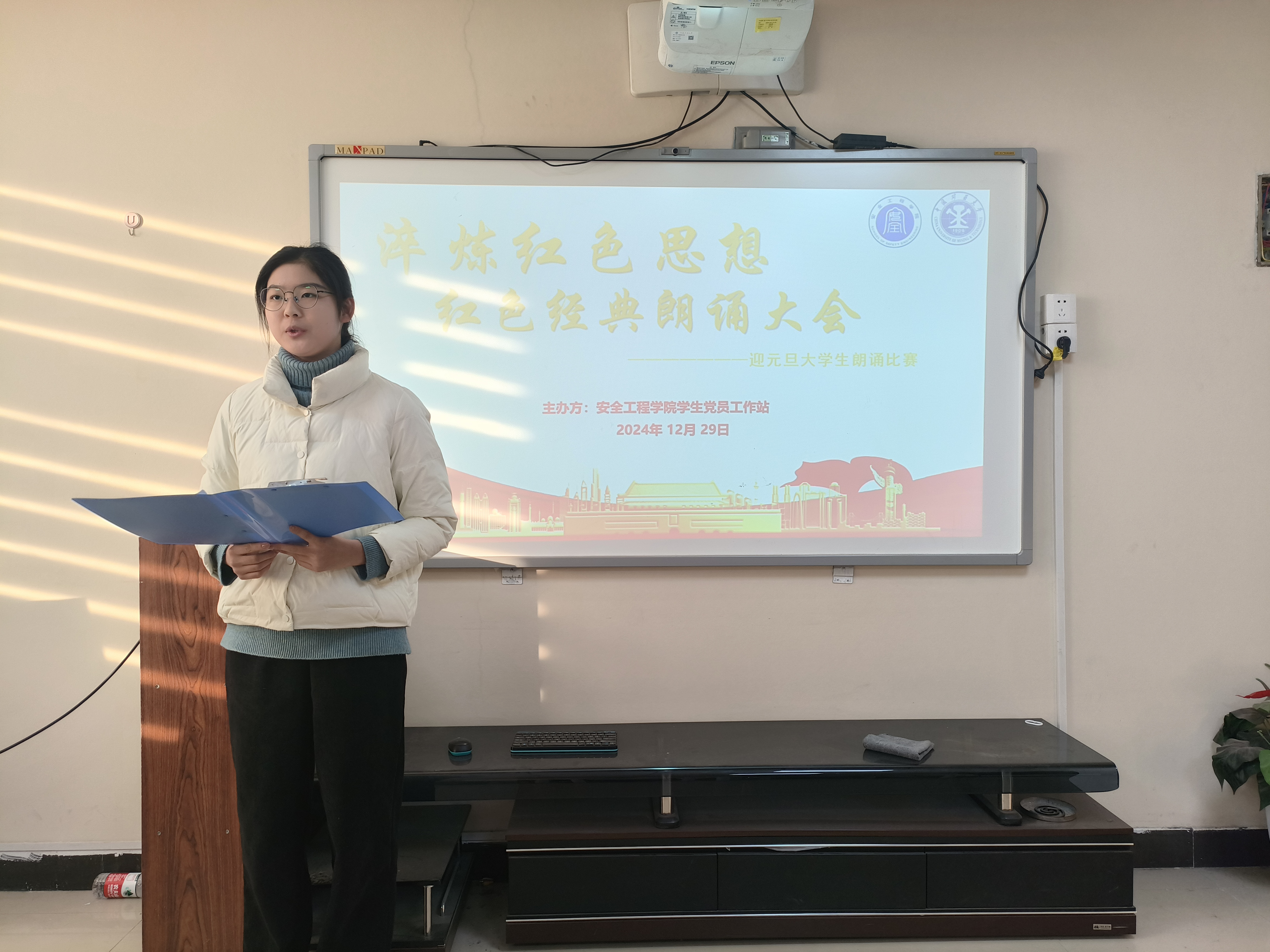 学生党员工作站于梅三五楼力行轩举办主题为“淬炼红色思想”的“迎元旦”红色经典朗诵比赛,PO18