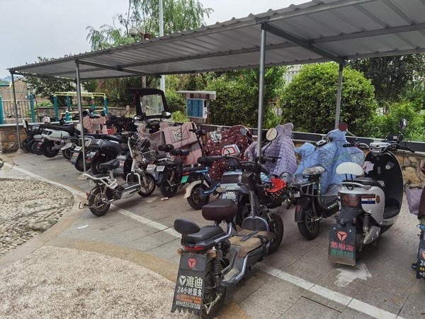 海阳市御景园小区由于修建时间较晚,相关的基础设施比较完善,小区配有地下停车场,但徐世龙在小区内并没有发现电动车停车棚,并且部分居民将电动车停放在地下停车库的入口处,存在较大的安全隐患。同时,徐世龙同学也发现,部分小区居民将电动车停放在自家楼下空地,显得有些杂乱无章,占用了道路,影响了小区的内部交通。