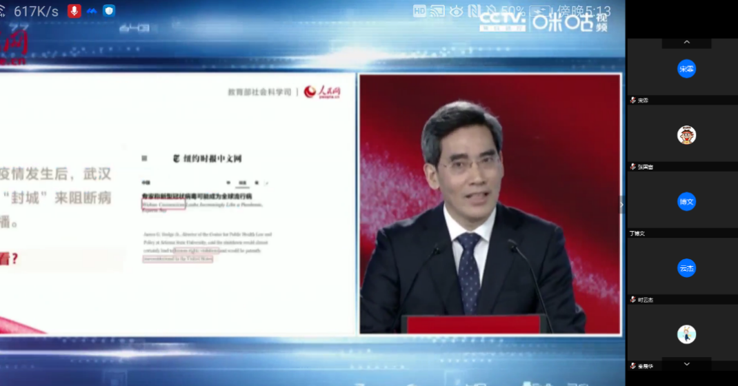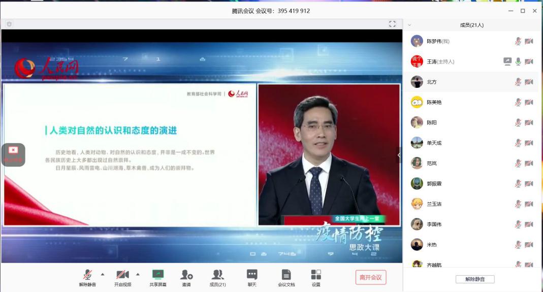 共734名本科生、研究生通过电脑、手机和平板等渠道共同收看了由教育部社会科学司、人民网联合举办的“全国大学生同上一堂疫情防控思政大课”。