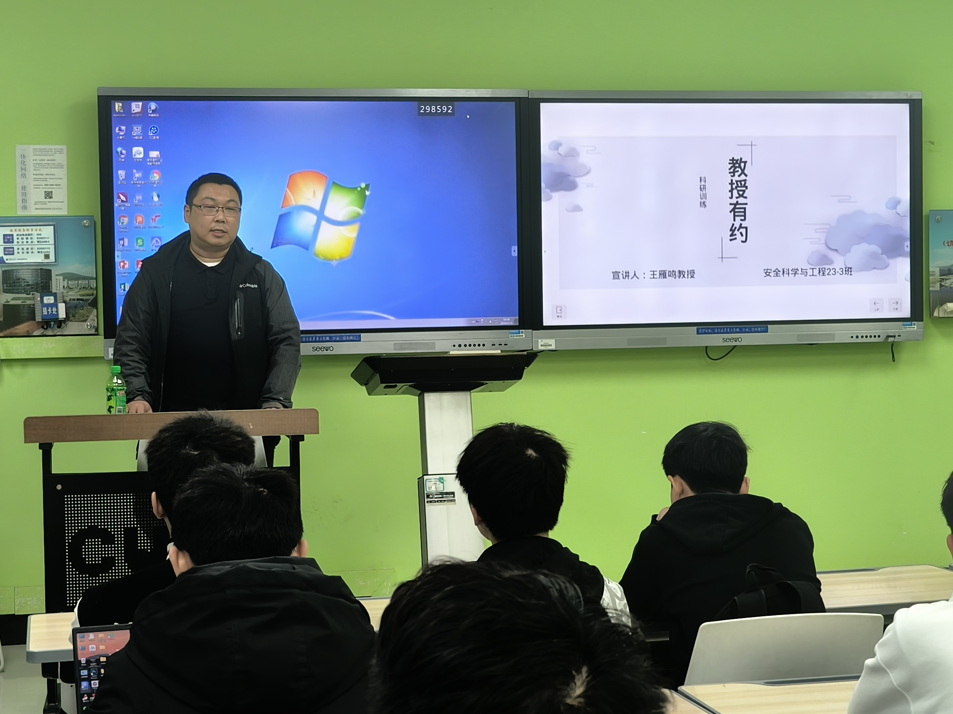 于博五A103开展“科研训练”主题讲座,王雁鸣教授受邀主讲,2023-3班全体同学参加本次活动,行政班主任冯小军主持本次活动。