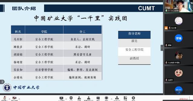 本次共有11支参赛队伍参与答辩,实践内容涵盖党史学习、环境保护、文化传承、政策调研四个方面。其中,“天池之路,与矿同行”实践团前往新疆天池能源公司,采访企业领导,分析解读煤炭产业发展趋势,并总结出了煤炭企业在转型道路上遇到的问题并且提出了相应的解决方法。“下乡的小火花”团队成员分别前往政府及基层展开工作,部分成员坚守在泄洪防洪、抵抗台风一线。“缘梦乡村”实践团讲述了实践团成员投身防疫活动的过程。团队成员投身车站、超市等多个人流聚集地,以志愿者的身份负责测温、信息录入、防疫宣传等工作,为防疫事业奉献自己的力量。“一千里”实践团成员深入乡村,对“留守儿童”、“产业振兴”等重点问题进行实地调研,对各自家乡的脱贫攻坚成果以及国家的“乡村振兴战略”有了更深层次的了解。此外,还有部分团队根据实践成果,围绕“空气污染”、“古城保护”等主题形成了暑期社会实践调研报告。