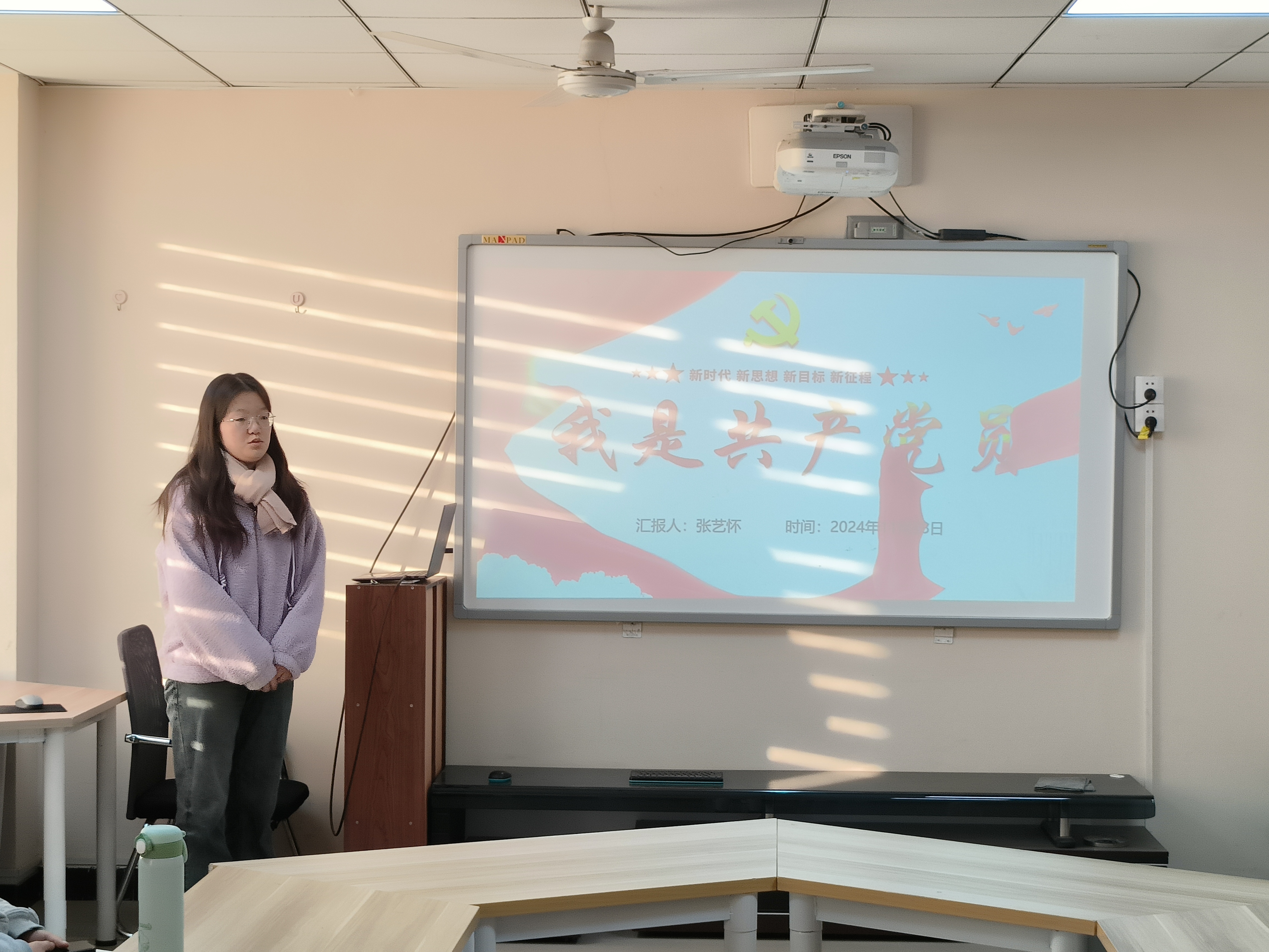 活动伊始,韩默楠同学先为大家讲解在中国航展上面的中国智慧,使大家切身感受到科技的力量,同时她表明:这样的航展不仅仅是观看,更是我们青年一代对未来的期待与向往。随后,张艺怀同学分别从党员的初心溯源、党员的责任和担当等方面向大家介绍如何做一名合格的共产党员。最后,她为成员们讲述张桂梅、周永开等优秀党员的事迹,号召大家以他们为目标,不断发展和提升自我。