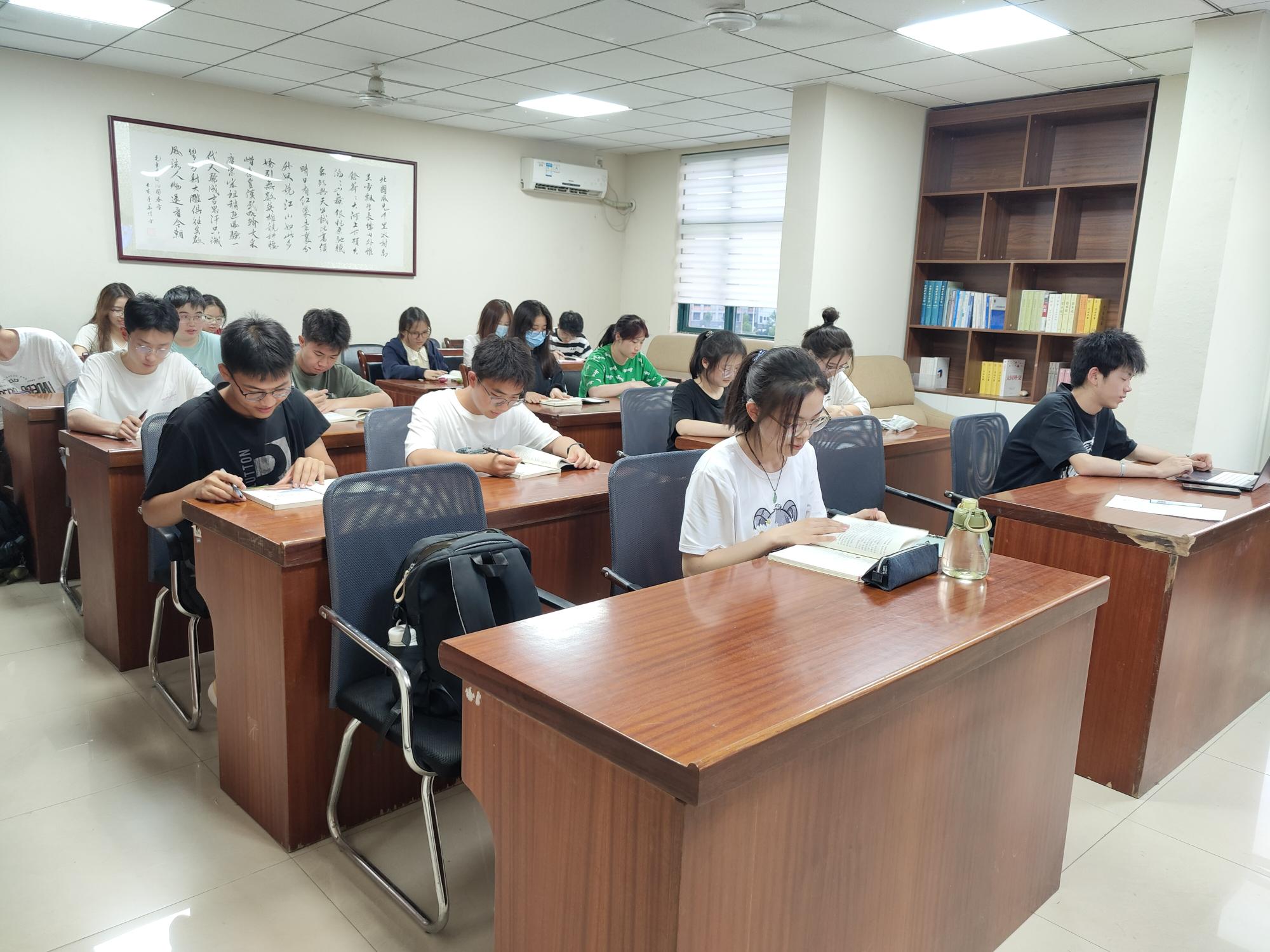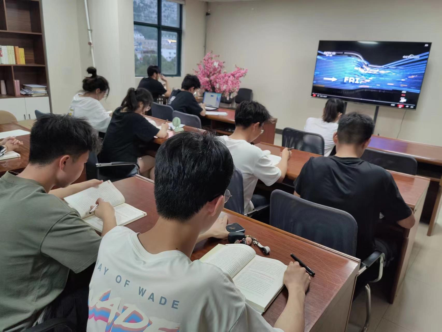 活动伊始,同学们以小组为单位开始阅读《习近平总书记教育重要论述讲义》。阅读过程中,每位同学们都沉心精读,细细地体会习近平总书记一言一句的奥妙。读到精彩处,同学们拿起手中的纸笔记录下书中的精彩语句及自身的心得体会。到了小组讨论环节,同学们就书中的学习内容发表了自己学习心得,大家都在热烈的讨论中受益良多。小组阅读结束后,知行社为大家播放了《新闻周刊》节目,希望同学们在学好课本知识的同时也能做到关注时事,正确把握舆论和国内外局势。