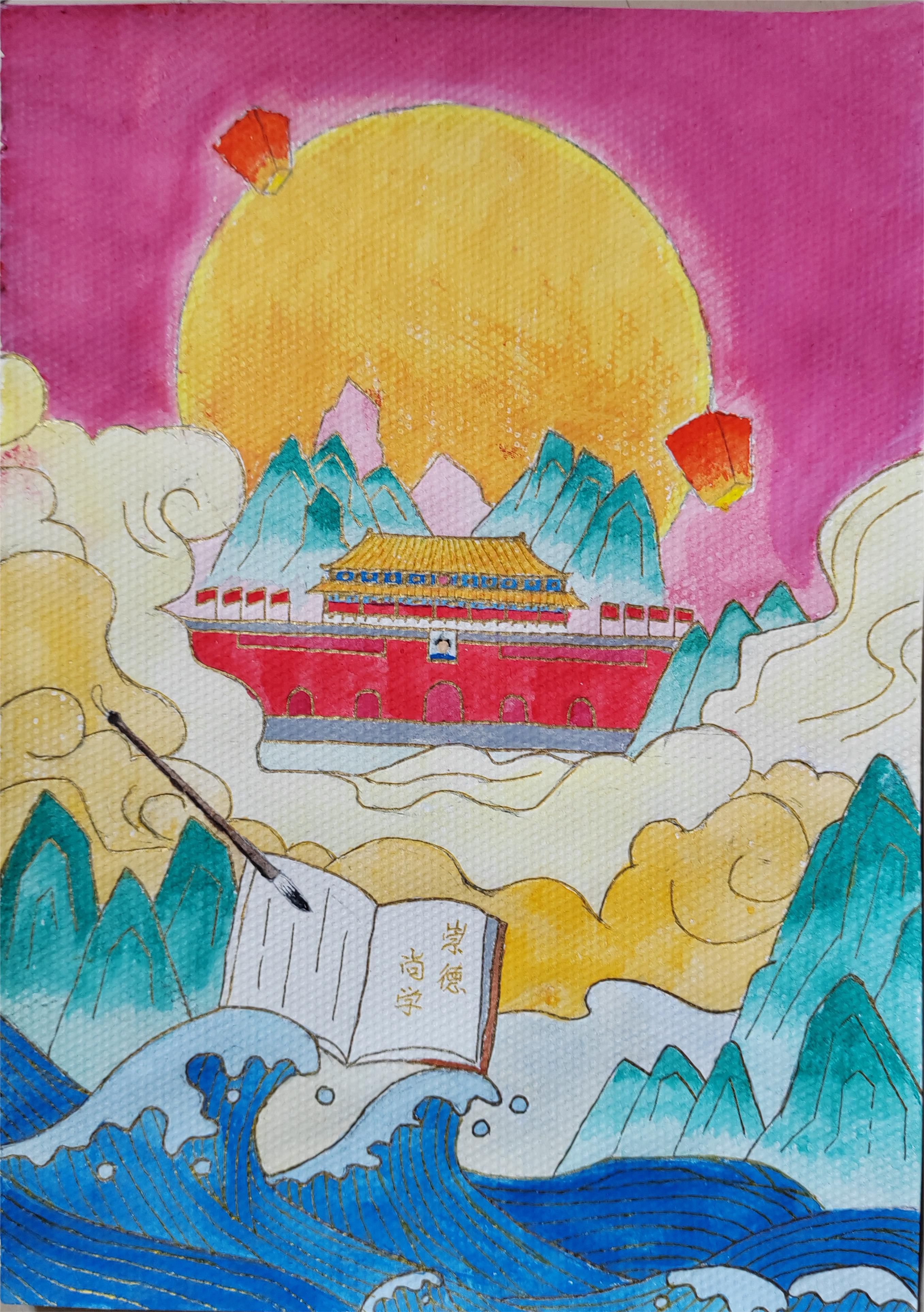 活动伊始,团委学生会心理自助中心和文艺部线上线下积极宣传动员,活动期间,同学们的热情高涨,他们用画笔勾勒出心中的祖国,以点点笔墨述出心中爱国之情。本次“歌颂祖国”书画大赛以“崇德尚学,共建未来”和“与国同庆”为主题,PO18
