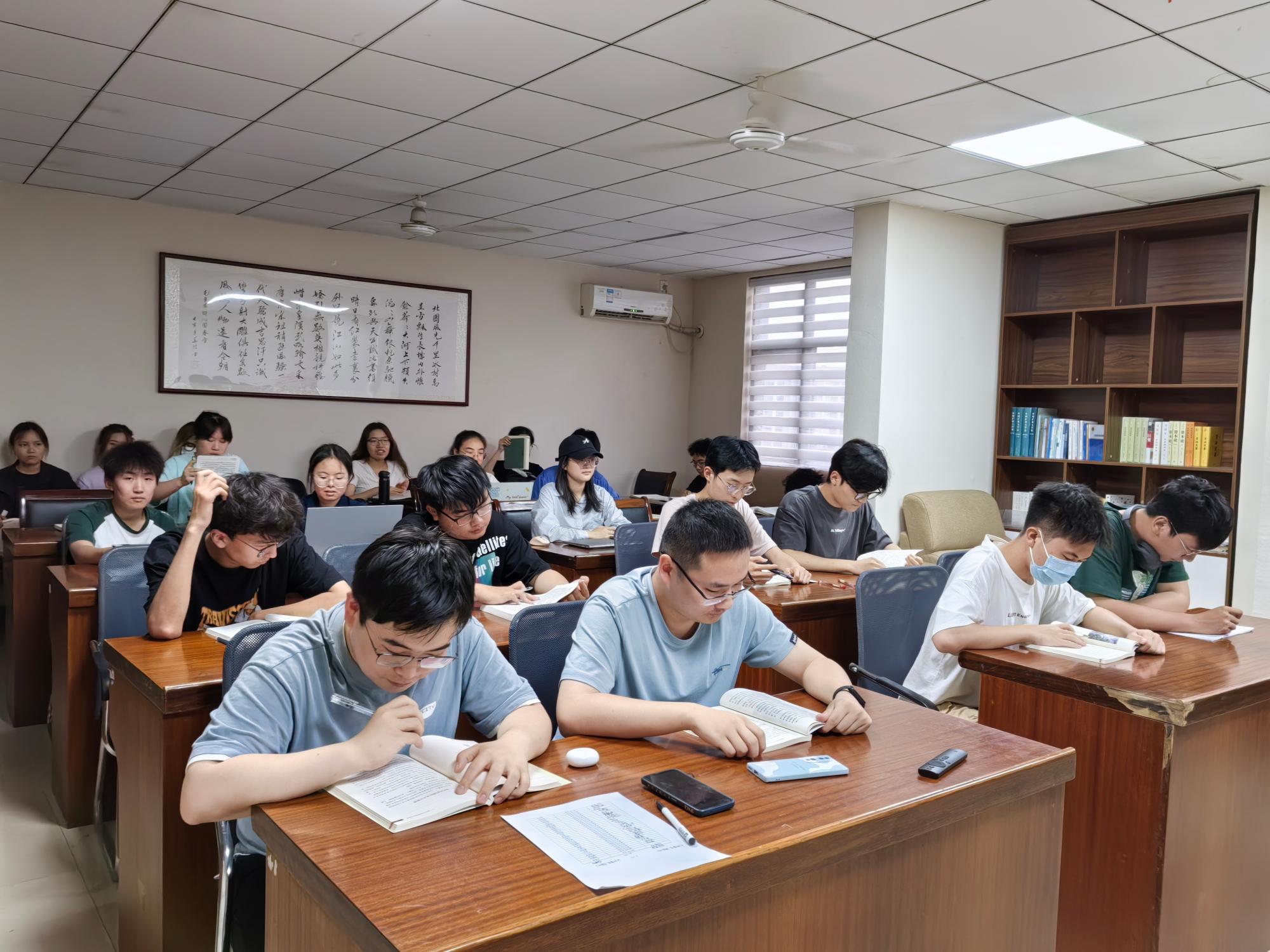 同学们以小组为单位阅读《习近平总书记教育重要论述讲义》,阅读过程中,每位同学都全神贯注,仔细体会习近平总书记对“社会主义教育建设”的重视。读到精彩处,同学们拿起纸笔记录下书中的精彩语句以及心得感悟。接下来到了小组讨论环节,同学们就书中的相关教育方针,教育方向,教育建设等发表了自己的感悟与收获,在热烈的讨论中,同学们受益良多,深刻感受到了我国教育最鲜亮的底色。读书活动结束后,知行社为大家播放了《新闻周刊》节目,希望同学们在学好理论知识的同时也能做到关注时事政治,精准把握社会舆论和国内外局势,做到理论和实践的相结合。