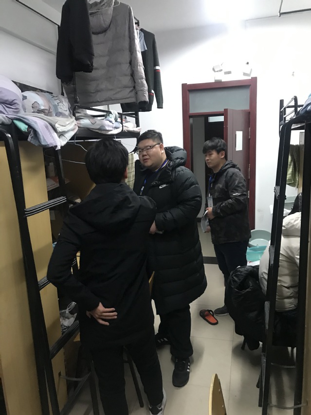 为做好学生宿舍安全管理工作,消除安全隐患,营造良好的宿舍生活氛围,3晚,梅苑分党工委安全学院工作组开展安全大检查。安全学院学工办主任于基伯,院团委书记刘世通,辅导排日代、吕鑫、王蓉莫达梅苑分党工委安全学院工作组学生骨干和志愿者们对梅B区、梅三B进行了全面检查。