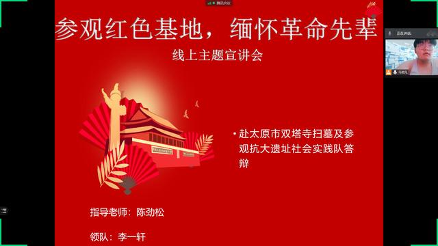 “开拓创新队”暑期社会实践团开展了三次主题为“参观红色基地,缅怀革命先辈”的线上宣讲会。
