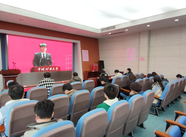 在矿业科学研究中心A200设立分会场,通过网络同步收看大会直播。学院党委副书记孙留涛、院学工办主任刘世通及学生代表参与观看本次学生表彰大会。