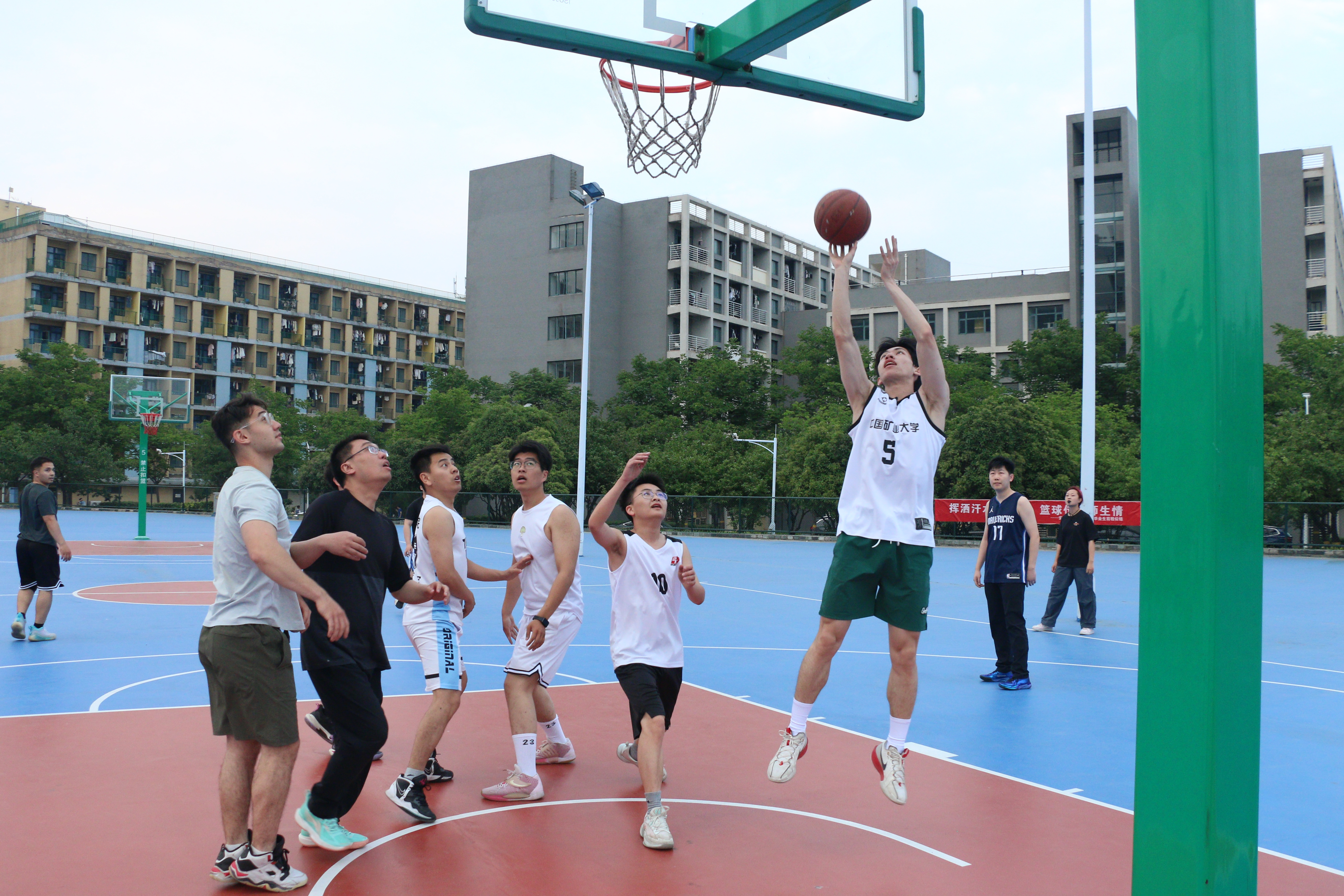 师生昂扬向上的精神风貌。上半场结束后,活动特别设置“三分大赛”,吸引了师生踊跃参与。选手们每人获得6次投篮机会,投中三分球次数最多者获胜。现场欢呼声此起彼伏,最终,钱亚楠老师凭借精准的投射摘得“三分王”称号。