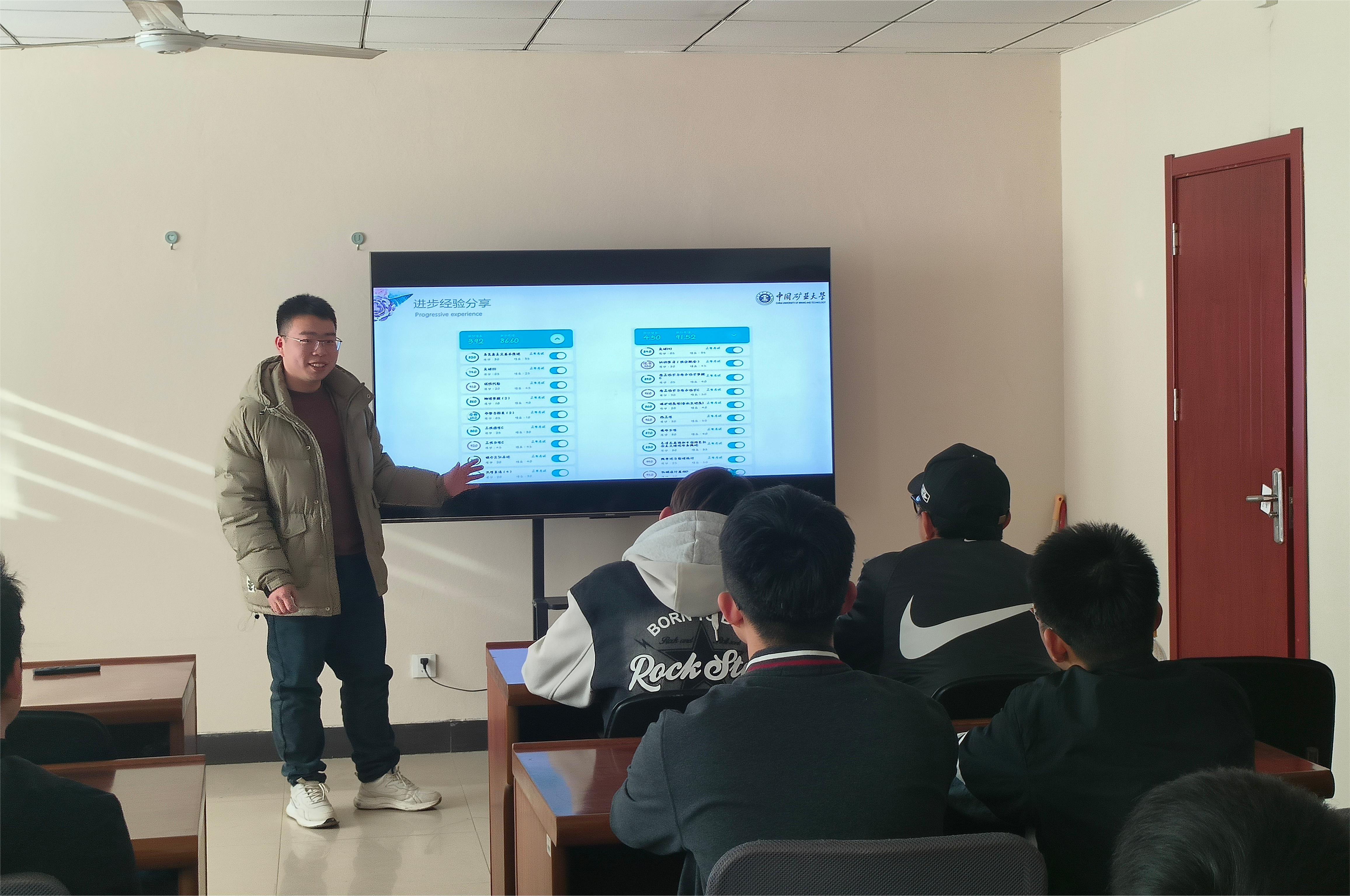 活动伊始,冀志环结合主体课程、就业选择等方面对不同专业展开介绍,接着冀志环从自身情况出发,向同学们介绍个人学习方法和学习经验,分享了从大一到目前的成长与进步的经验,助力班级同学的学习和发展,激励同学们从当下开始,行稳致远,铸就辉煌。姜丽源以“尽力而为,尽兴而归”为主题,针对本科学习提出四个关键词,并从自我反思、学习方法等方面展开分享。她通过剖析自己大一学年成绩不理想的原因,以及大二学年奋起直追不断逆袭的案例来鼓励成绩目前不够理想的同学们不要轻言放弃,把握课堂,不断突破自己。姜丽源鼓励同学们应该不断地自我剖析,自我总结,不断明晰自身的优缺点,才能更好地确定未来的生涯发展方向;最后,王彬皓围绕两会展开讲述。他向同学们说明大学生为什么要关注两会,以及两会和我们大学生之间的关系,使同学们对两会的精神和意义进行了更加深入的了解和感悟,带动同学们参与到两会精神的学习、讨论和实践中去。