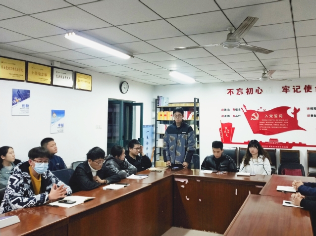 本科生第二党支部于梅三五楼党员工作站召开讨论接收预备党员支部大会,本次会议由本科生第二党支部组织委员张腾镨主持,支部书记刘世通老师、副书记孙一伟老师、本科生第二党支部全体党员及预备党员等十一位发展对象参与本次会议。