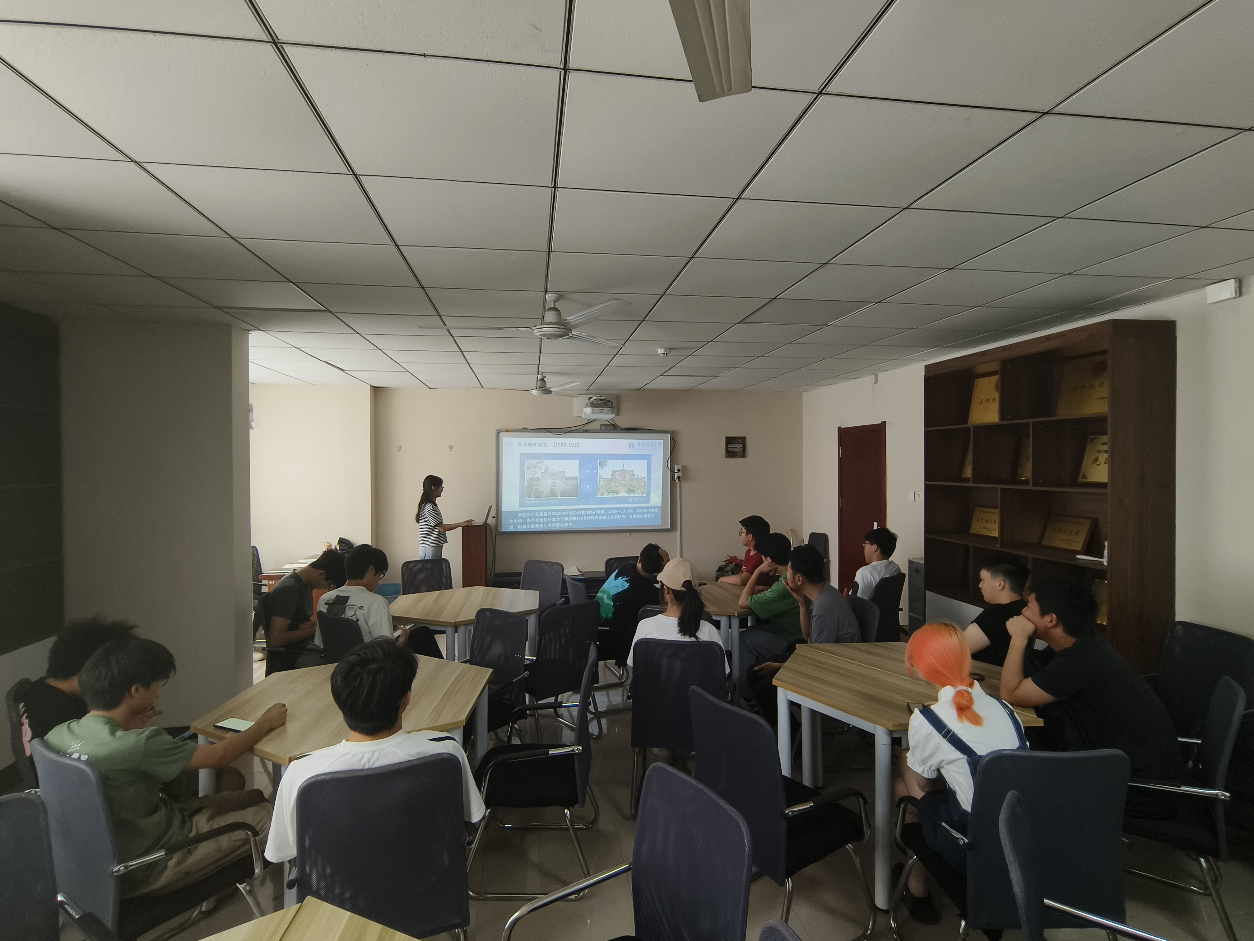 学生党员工作站于梅三五楼力行轩开展“明矿大校史,忆百年风华”主题讲座, 23级朋辈导师彭川钰主讲,23级3班全体同学们参与。