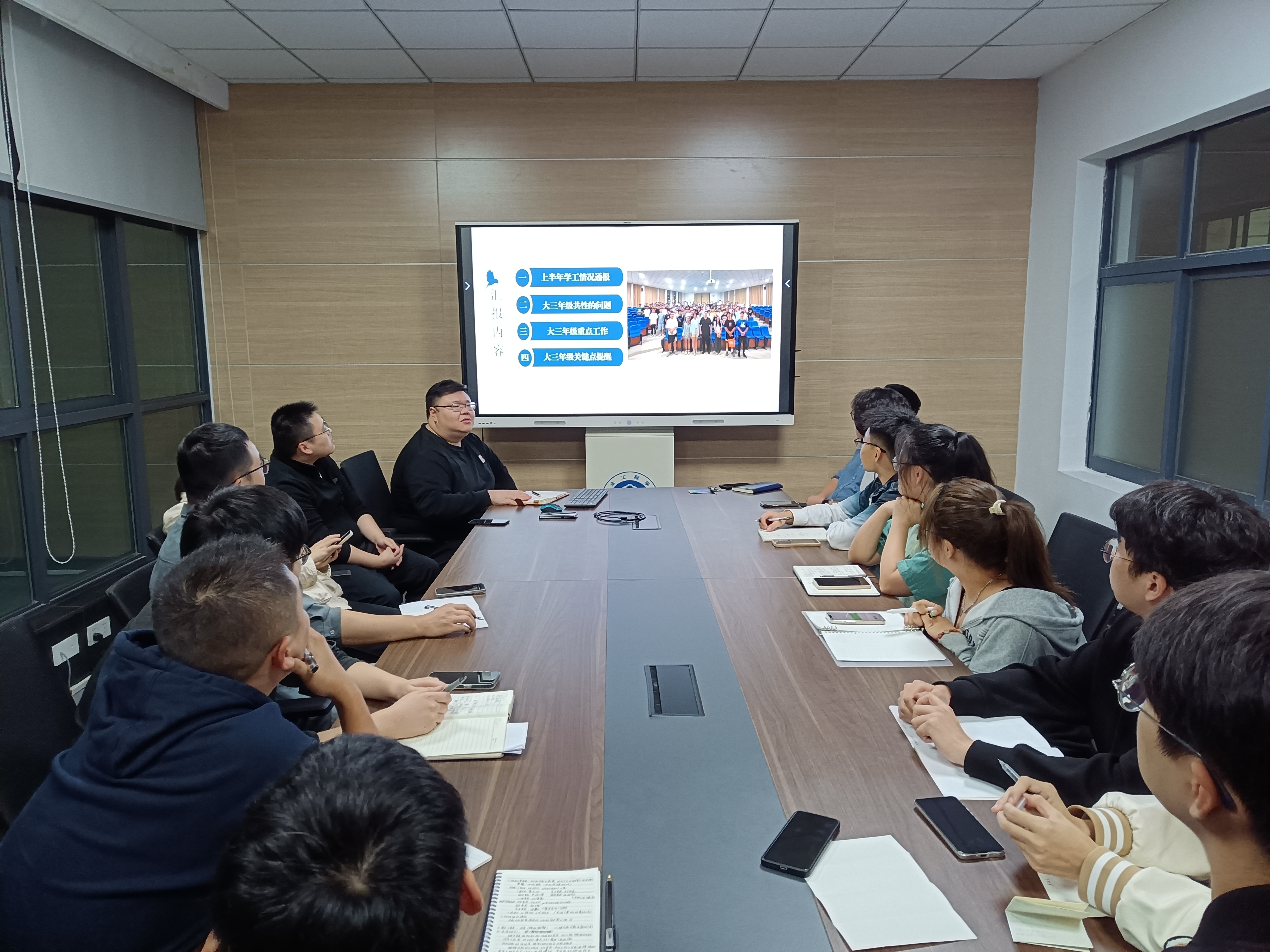 2020级班主任座谈会上,辅导员胥振对学生推免情况、就业意向、考研报名、工作签约及重点帮扶等情况进行了介绍,各班主任老师就此展开充分交流,尤其对如何帮助考研学生有效备考、帮助就业困难学生提升就业竞争力等问题展开讨论。2021级班主任座谈会上,学工办主任、21级辅导员刘世通从上半年学生工作情况通报、大三年级共性的问题、大三年级重点工作、大三年级关键点提醒等方面展开介绍,辅导员助理从教授有约活动开展情况,各班级考试挂科情况展开汇报,各班班长汇报了班级学风建设、凝聚力建设、思想动态、重点学生情况、下一步计划,提出了同学们现阶段面临的困难和问题,各位班主任就班长收集的问题展开讨论及解答。2022级班主任座谈会上,辅导员赵厚宽围绕2022级同学上一学年主要科目成绩、专业分流后班级学生学业情况、本学期心理测评结果、现阶段学生在学习和生活方面的问题及主要诉求等方面进行详细介绍。班主任老师们从学生学习方法、学习状态等方面进行了充分交流沟通。2023级班主任座谈会上,辅导员郭佳从入学教育、班级活动开展、学风建设、心理健康等方面展开介绍,郭佳老师详细介绍了各班入学以来活动开展的具体情况、本学期新生入学心理测评结果,分析了大一高数模考的成绩分布以及班级建设中存在的问题,希望各位班主任可以加强和班级主要学生骨干之间的联系,推动班级日常活动的开展,促进班级凝聚力的提升,围绕学生关切问题,及时回应学生需求,解决学生“急难愁盼”,让关怀温暖“不断线”。