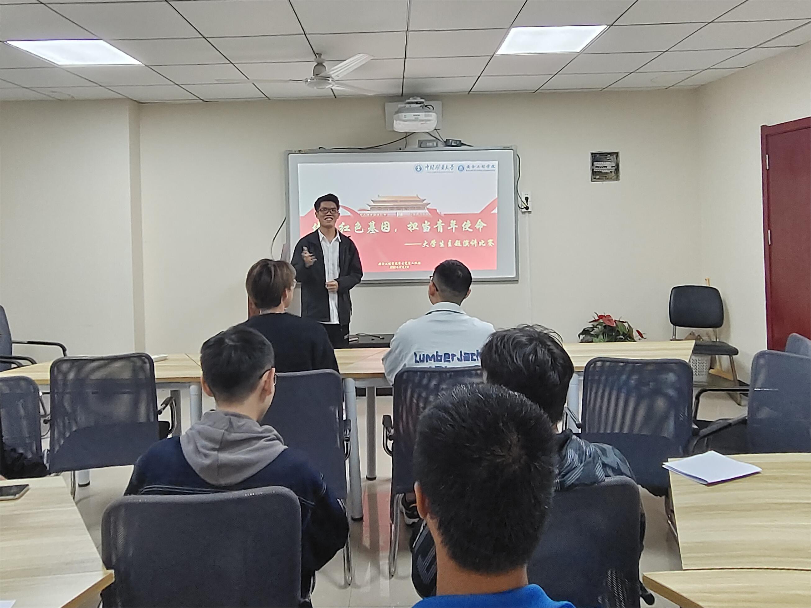 学生党员工作站在力行轩举办“传承红色基因:青年大学生使命与担当”演讲比赛,21级学生董浩然和22级学生杨舒锦主持本次活动。