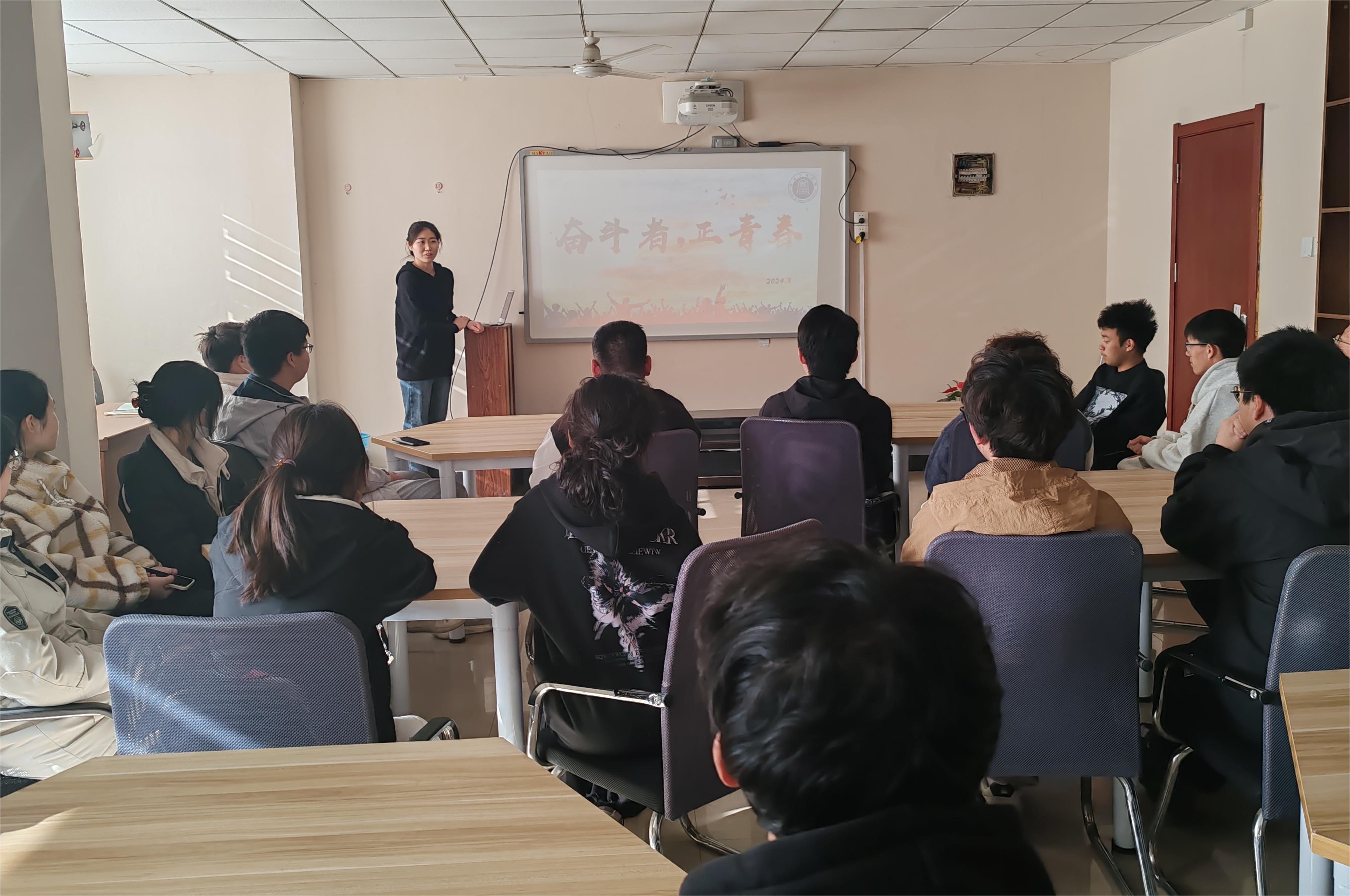 于行健书院力行轩召开“奋斗者,正青春”的主题座谈会,2023级兼职辅导员董映仪主讲,2023级部分学生参加本次座谈会。