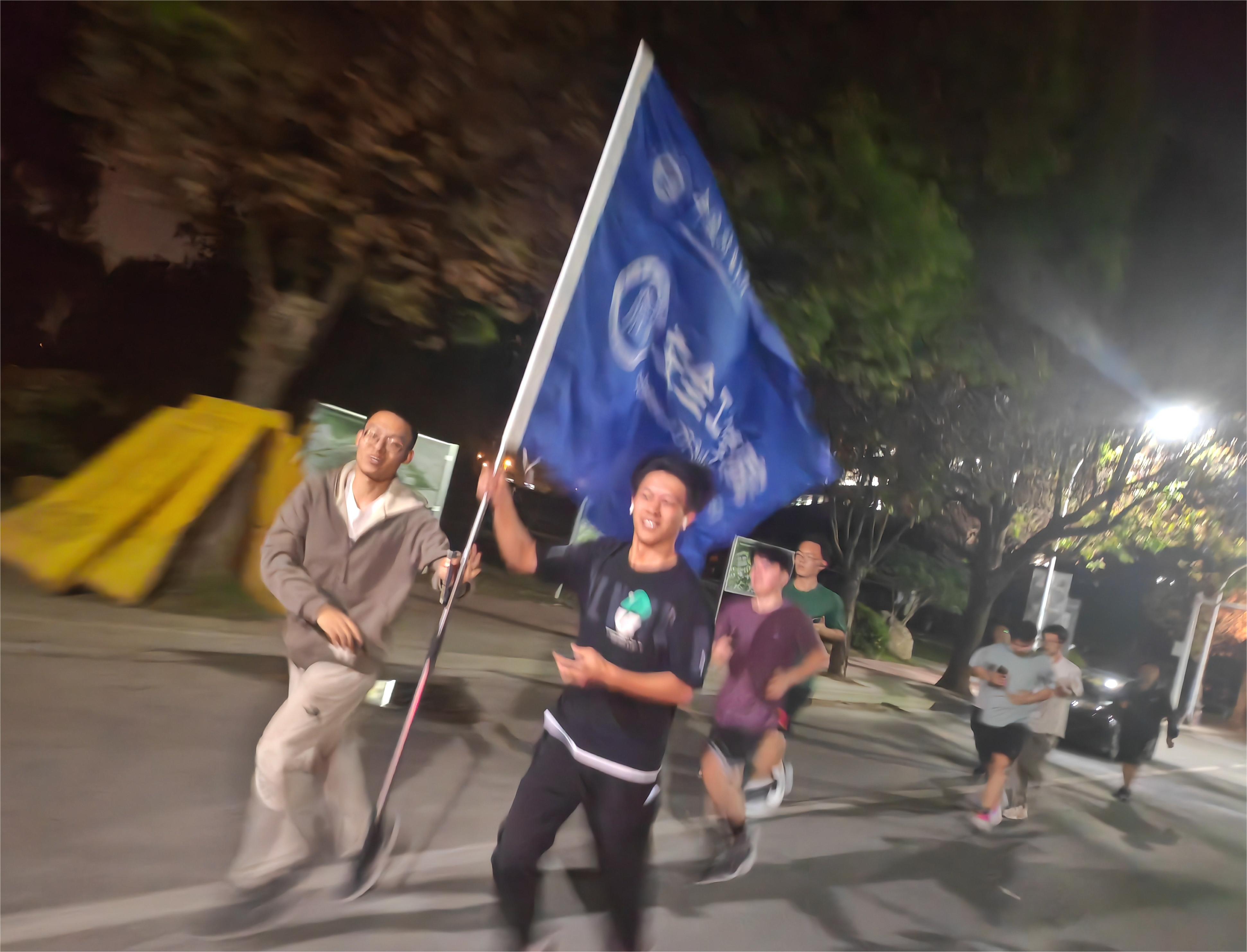 活动路线精心设计,从梅苑餐厅出发,绕校园展开,男生和女生分别完成约3.0千米和2.5千米的跑步路线。学院体育部特意制作了特色的夜跑旗帜,在夜跑途中挥舞,展现安全学院特色夜跑的风采。活动过程中,同学们三五结伴,迎着微凉的晚风,以自己最舒适的速度顺利完成了跑步任务,不仅锻炼了身体,也在校园内感受夜跑的乐趣。在快节奏的学习和生活之外,此次夜跑活动提供了一次体育锻炼的机会,更提供一次释放心灵的机会,同学放松身心,尽情奔跑,释放学习和生活中的压力,感受运动带来的愉悦。