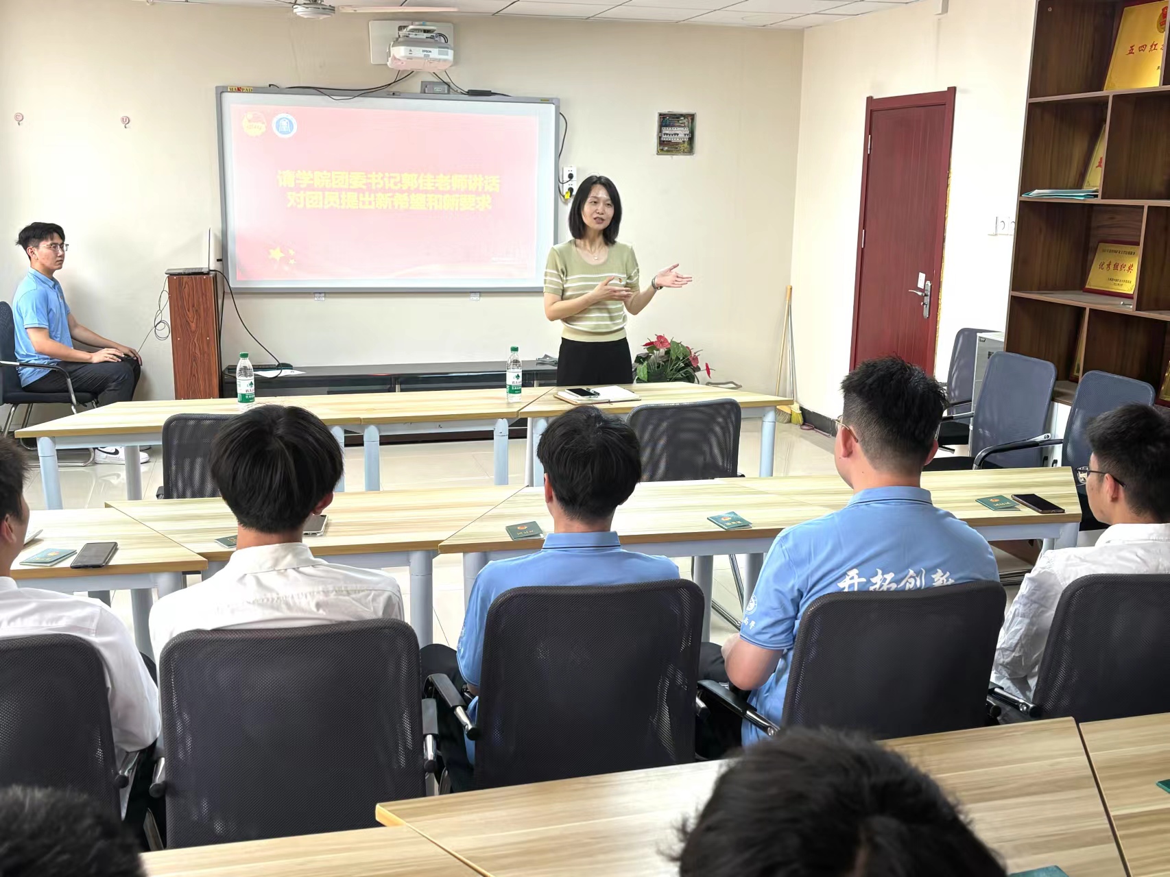 郭佳老师向入团的新团员们表示祝贺并寄语,她说,理想信念是指引青年进步的灯塔,敢于担当是引领青年建功的导航,困难磨砺是成就青年梦想的路径。在基层在一线在祖国发展的各条战线,都是青年学子将个人理想融入党和国家发展、民族复兴伟业中的缩影。青年学生生逢其时,要珍惜在校学习时光,充分发挥团员青年的先进作用,以实际行动践行入团誓言,贡献青春力量。