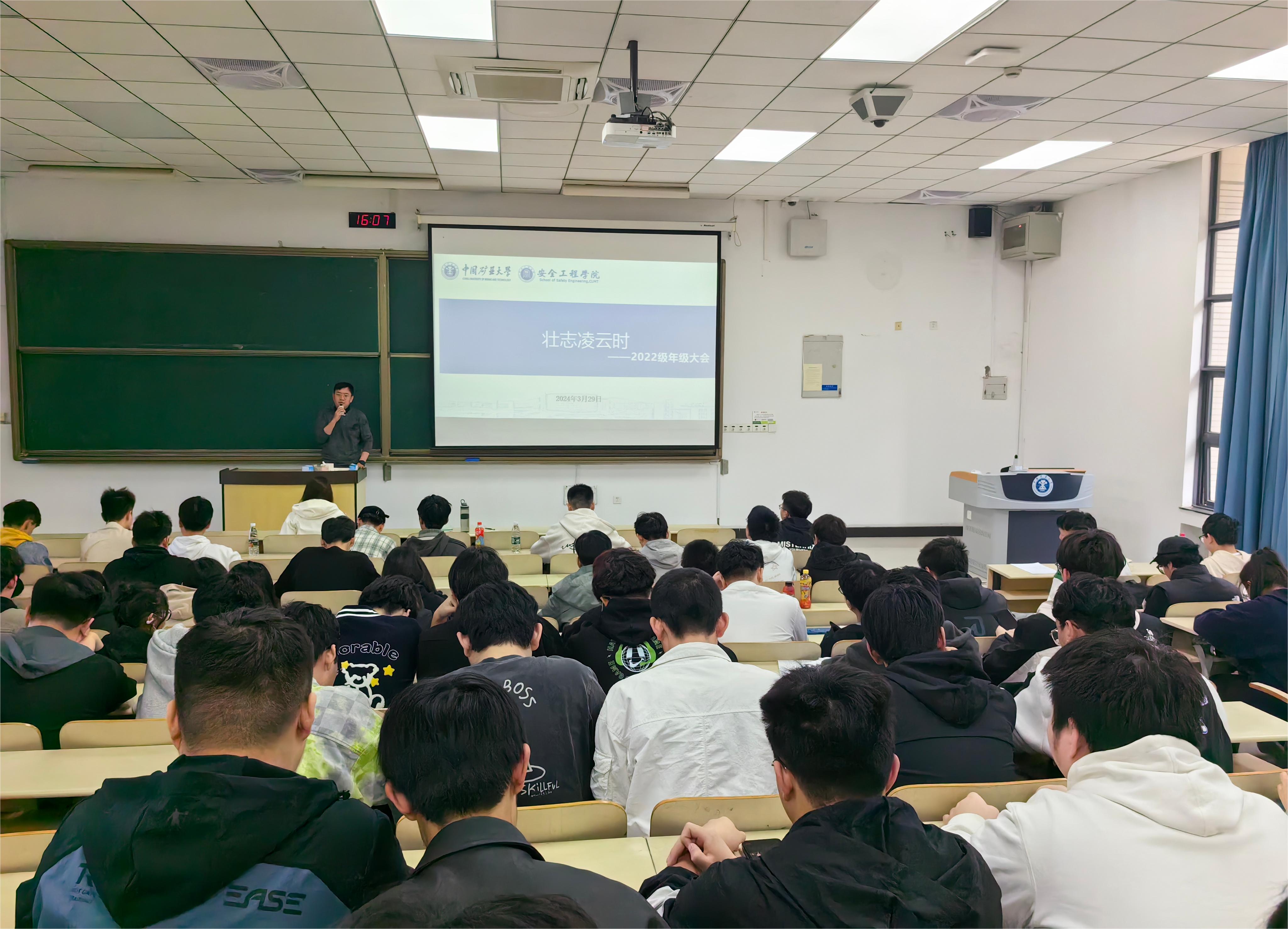 于博五A107召开以“壮志凌云时”为主题的2022级年级大会,2022级辅导员赵厚宽主讲,22级全体同学参加会议。