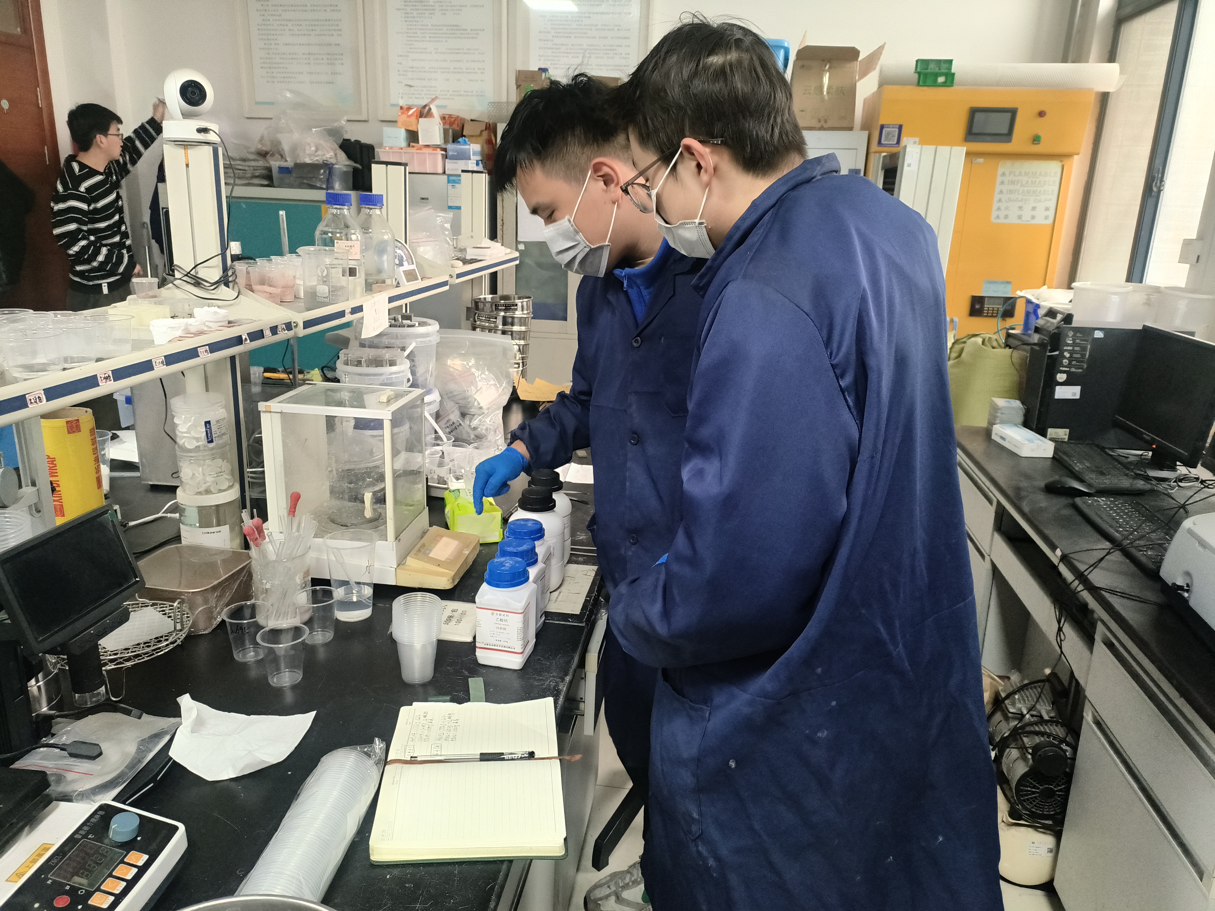 学生党员工作站开展主题为“朋辈传承·携手同行”的“青春对话”活动,李志仁同学带领林峰新生走进矿科楼实验室,开启本次科研探索之旅。