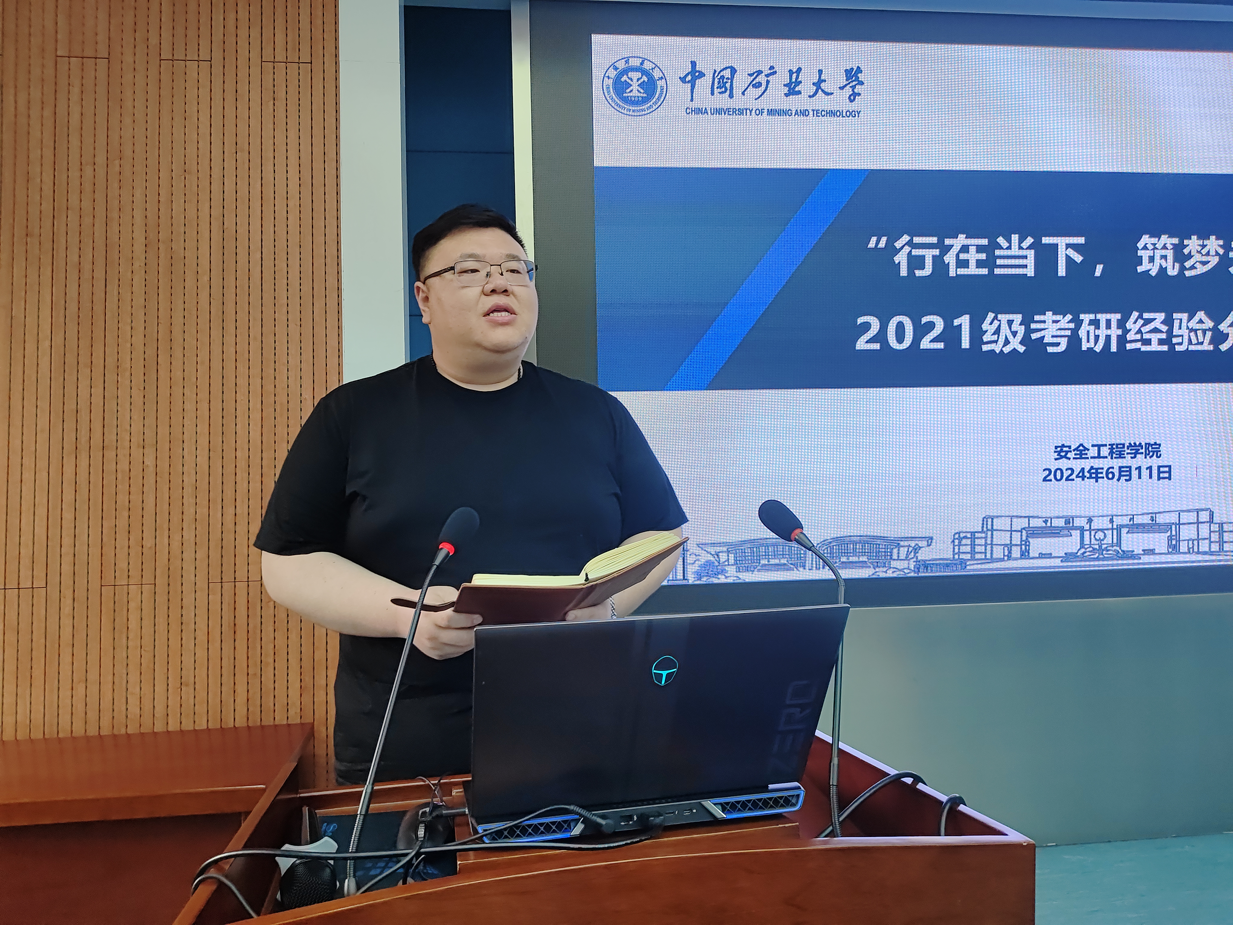 于矿科楼A200举行“行在当下,筑梦未来”2021级考研经验分享会。本科2020级考研成绩优异学生代表受邀主讲。学工办主任、2021级辅导员刘世通、2020级辅导员胥振以及PO18