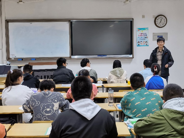 三班班主任刘玉冰老师着重强调了高数的重要性,告诉同学们得调整学习状态,要合理安排学习和娱乐,认真复习,为下个月的高数测试做好准备。2021级直博生张立学长给同学们分享经验,他为同学们讲解了保研所需的条件并用自己的亲身经历劝诫同学们:“大学生活的重心还是得放在学习上,合理的利用大一的时间打好基础,学好基础课,才有机会评优和保研。