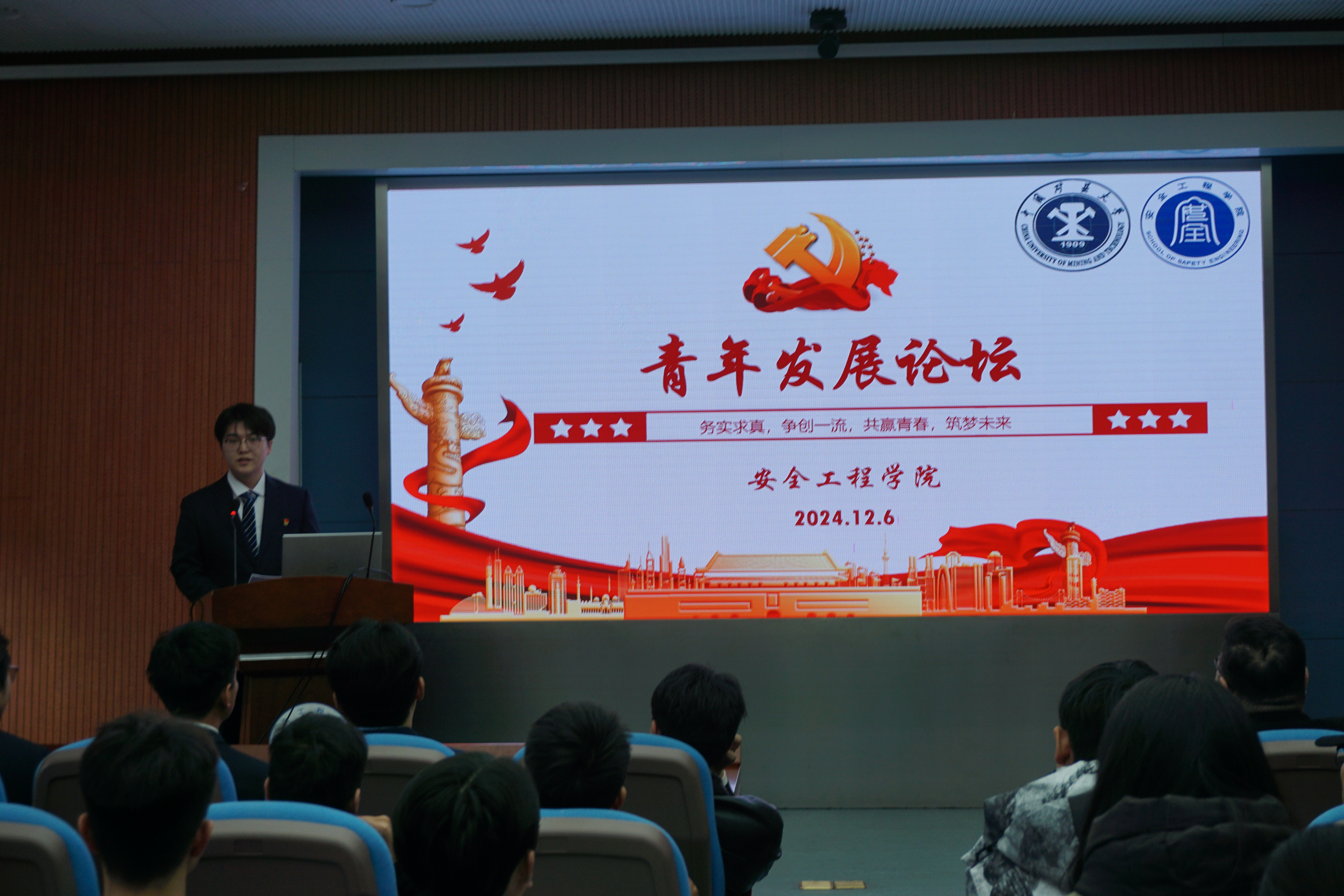 学生党员工作站于矿业科学中心A200举办“务实求真,笃行致远;争创一流,勇攀高峰”青年发展论坛。安全学院学工办主任刘世通、团委书记郭佳、辅导员胥振参加本次活动,PO18