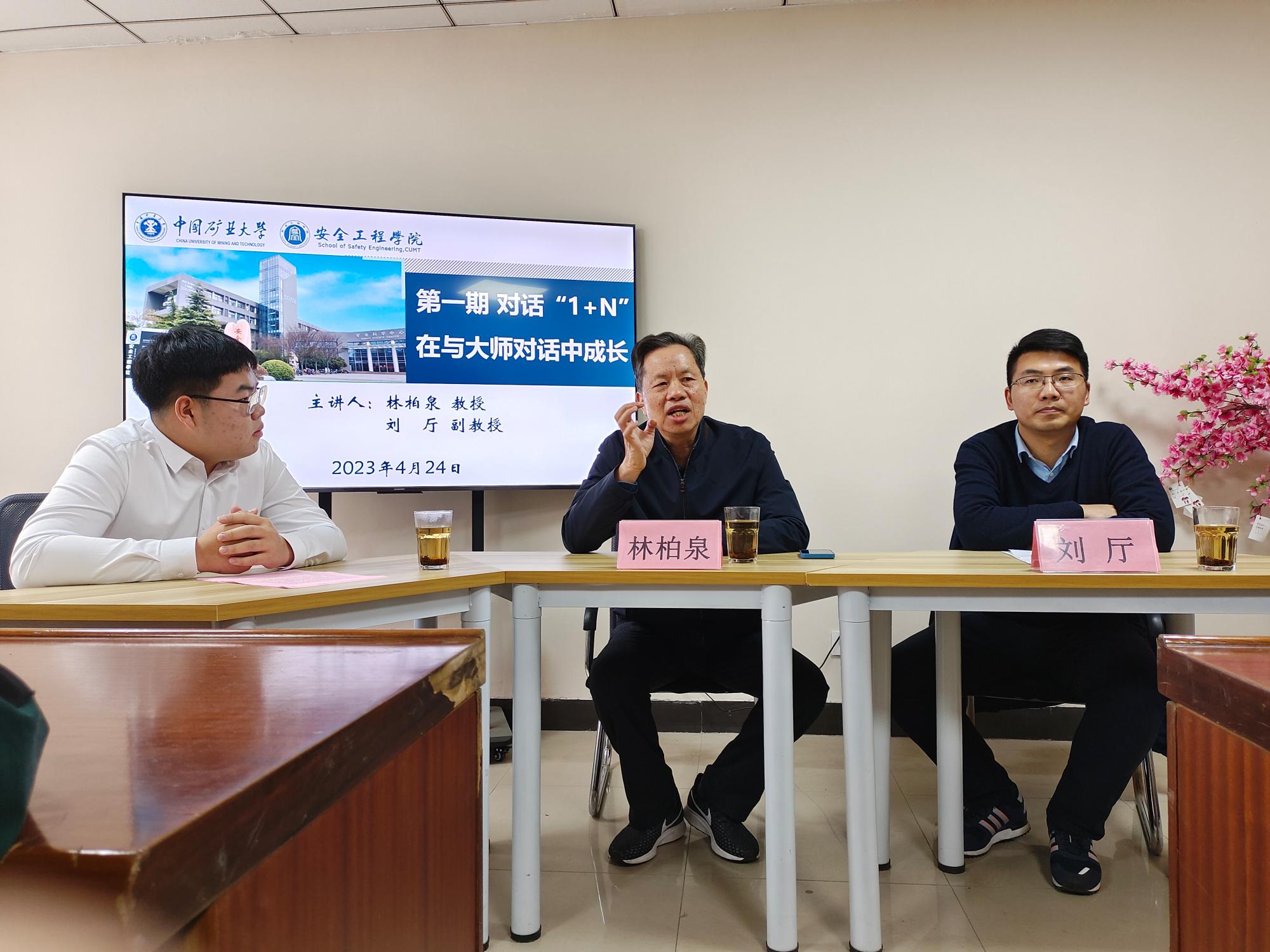 本次“对话1+N”访谈围绕专业发展历程、科研经验分享、时间管理分配、升学院校选择、国内外求学分析等几个方面依次展开。林柏泉教授和刘厅副教授结合自身的发展经历,针对上述访谈问题展开详细阐述。访谈中,林柏泉教授讲述自己年少读书时,便立志于中国矿业的安全发展,并以此勤奋学业、坚持锻炼,坚毅铸就科研成果。林教授主张有教无类,提出在培养学生过程中更加注重激发学生自身的发展潜能,引领其主动投身科研。林教授强调“五个一”工程,鼓励当代大学生应注重课程学习和管理工作的综合提升,努力成长为新时代复合型综合人才。刘厅老师简述自己转专业的经历和心路历程,针对学生时代科研问题对不同年级的学生提出了相应的建议。刘厅老师结合国外交流的经历,客观分析了国内外科研环境的对比变化,殷切希望同学们学有所成,回馈祖国,怀爱国心,扬爱国情。
